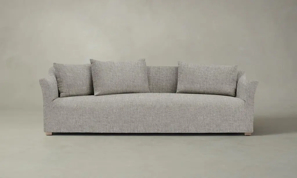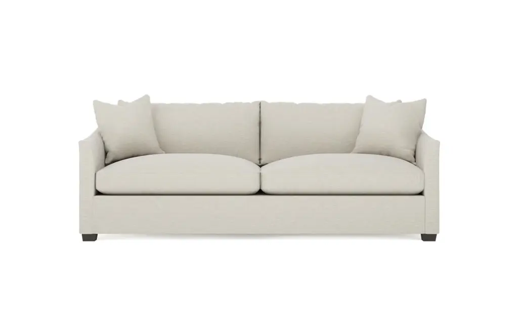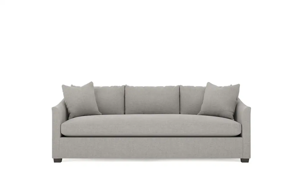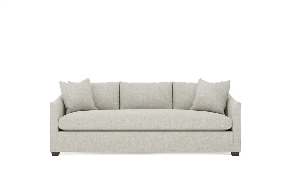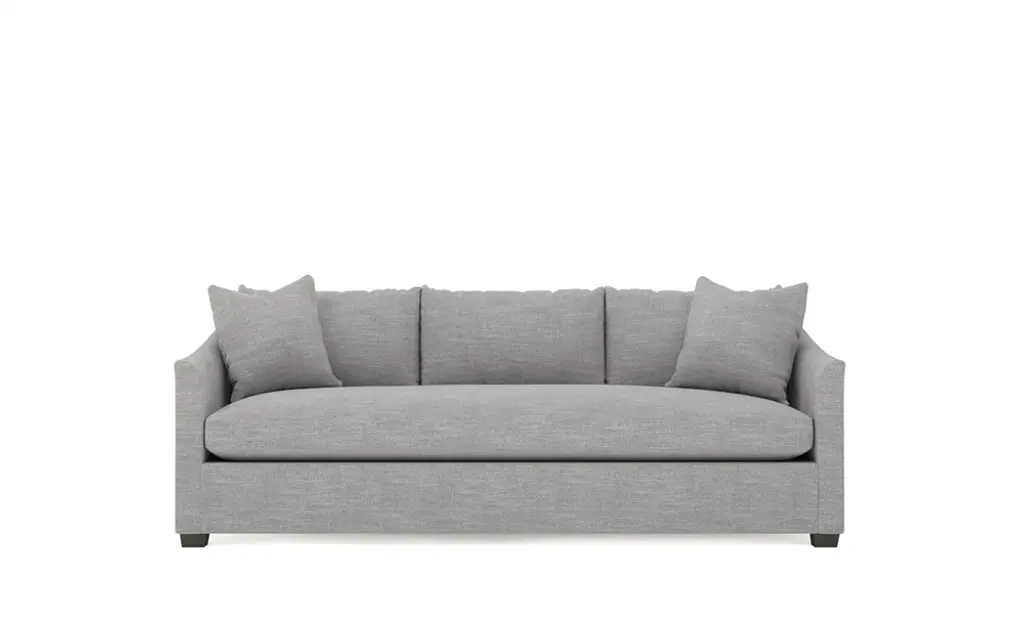 At once timeless and understated, the 89” Clairmont bench cushion sofa lends a charming touch to any modern or traditional space. Set atop tapered wood legs, the inviting silhouette includes softly sloped arms, gently curved back corners, and cozy throw pillows. Soft yet supportive with a slightly firm sit, the low-maintenance seat cushions feature a foam core surrounded by plush fiber fill. Choose from a variety of upholstery options, including linen, velvet, and performance fabrics.