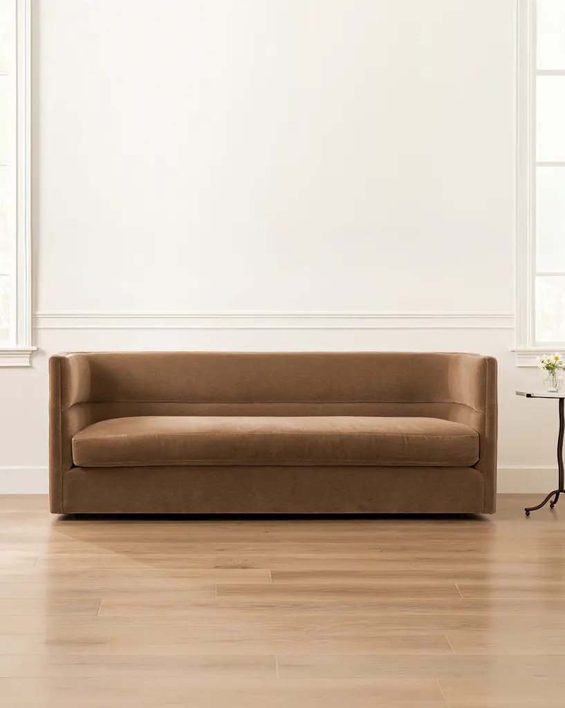 Our Claremont Sofa 84" takes a bold and vintage-inspired approach to luxurious comfort. A functional accent to your living space, the wide seat cushion is complemented by a channeled back. From velvet to boucle, make this piece completely your own by choosing from our favorite high-quality fabric choices that suit your space and lifestyle.