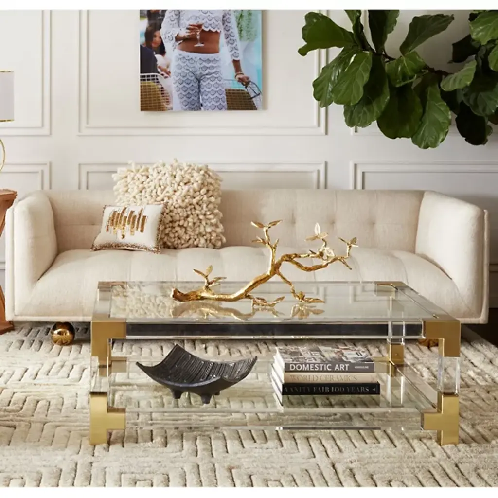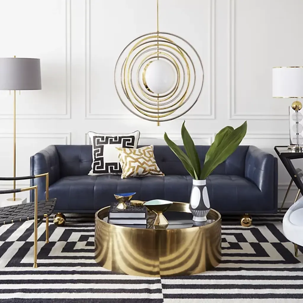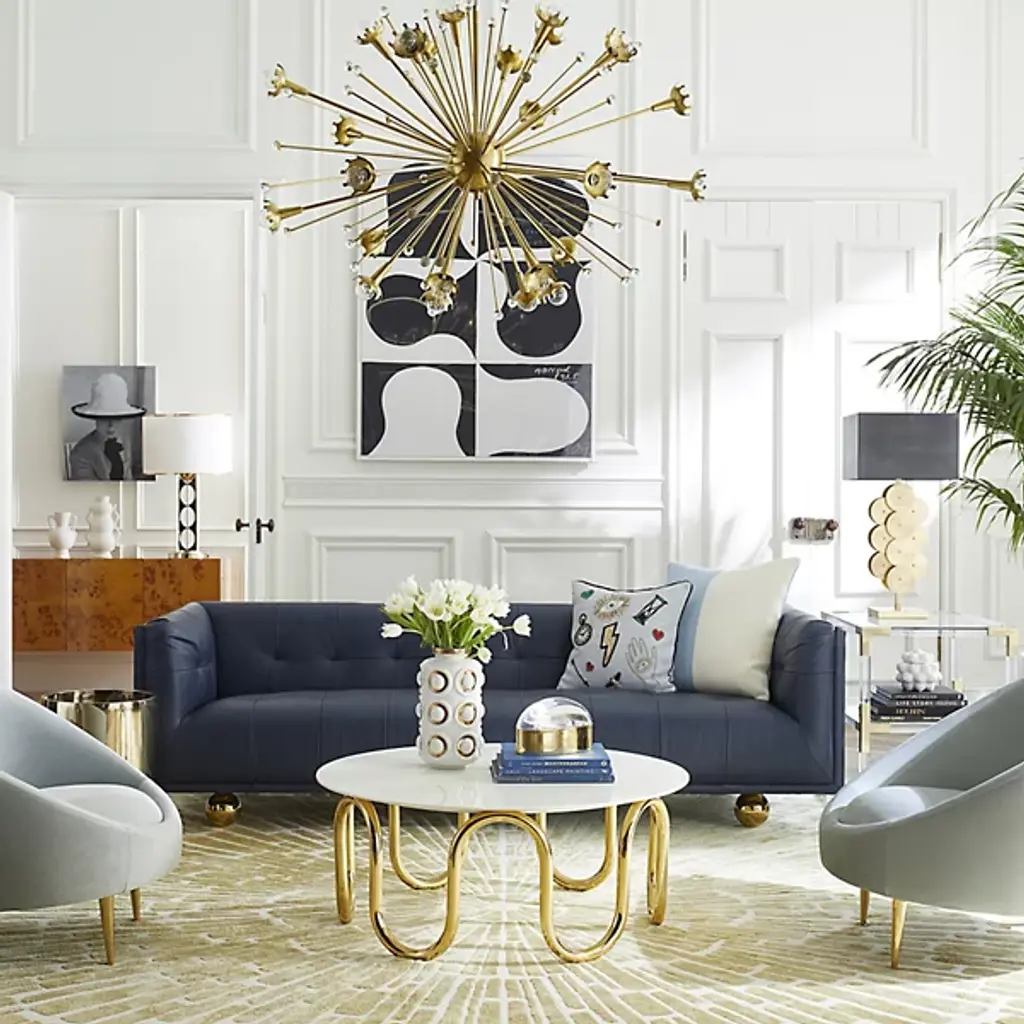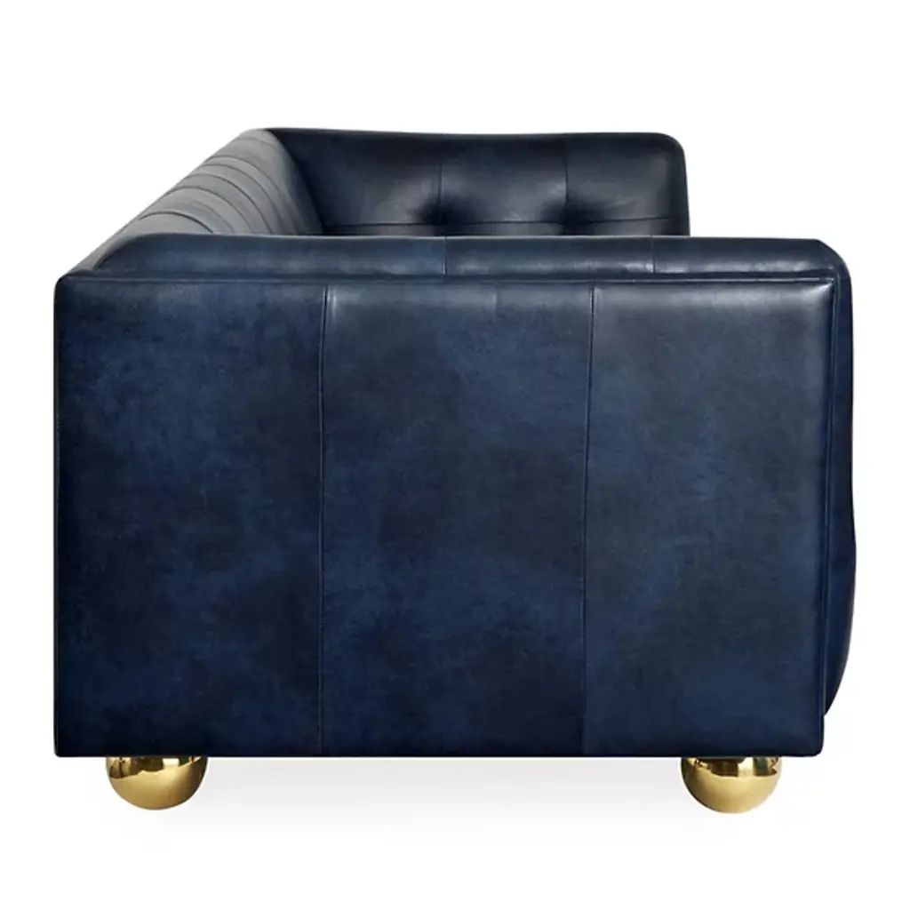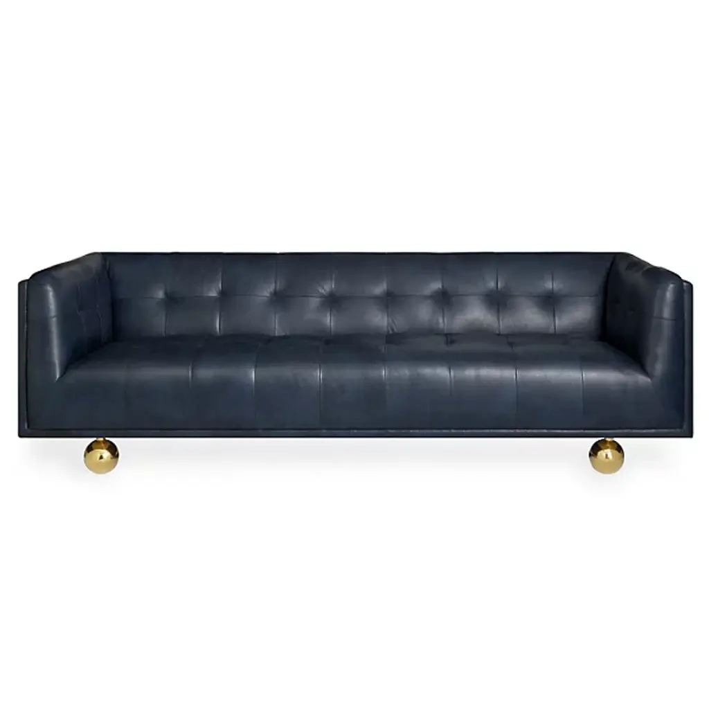 Introduce clean contours to the décor of your home with the Claridge Sofa from Jonathan Adler. Working with a range of styles and rooms within your home, this piece is elegant and appealing, with a silhouette pared down with tailored tufting for additional comfort. Replacing traditional wooden bun feet is a set of smooth brass orbs that add a unique visual touch. The loungey look and neutral colors make for an aesthetically pleasing experience throughout the year.