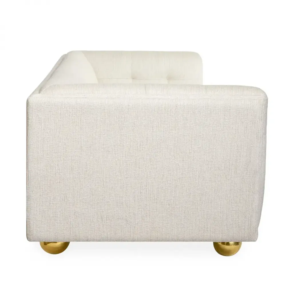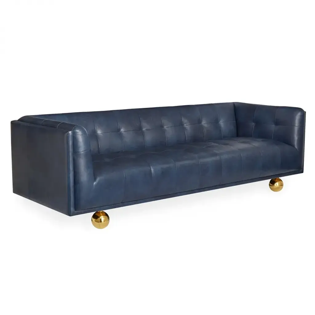 21st Century Comfort.Our spin on the classic Chesterfield. We took the original profile—clubby comfort, tailored tufting—and made it modern with a pared down silhouette. The finishing touch: oversized (and ultra-glam) brass orbs in place of traditional wooden bun feet. The perfect balance of formal and fresh, its loungey depth and neutral colorways (fresh stone, moody navy, or a faded blue velvet) make it a must-have for any abode.