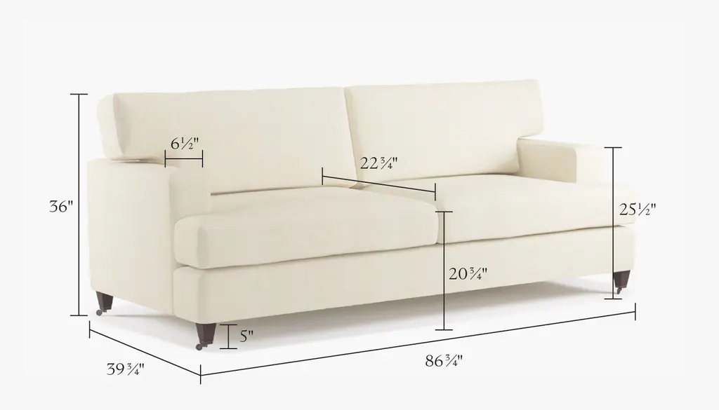 Featuring a T-shaped back cushion and caster leg, our Classic Sofa is timeless in style and luxe in comfort. Our sofa frames are constructed from solid wood, laminated panels, and tempered steel springs engineered to stand the test of time. With a reversible, down alternative cushion, the Classic sofa offers a soft and supportive sit with minimal cushion fluffing required. White Glove delivery. No assembly required.