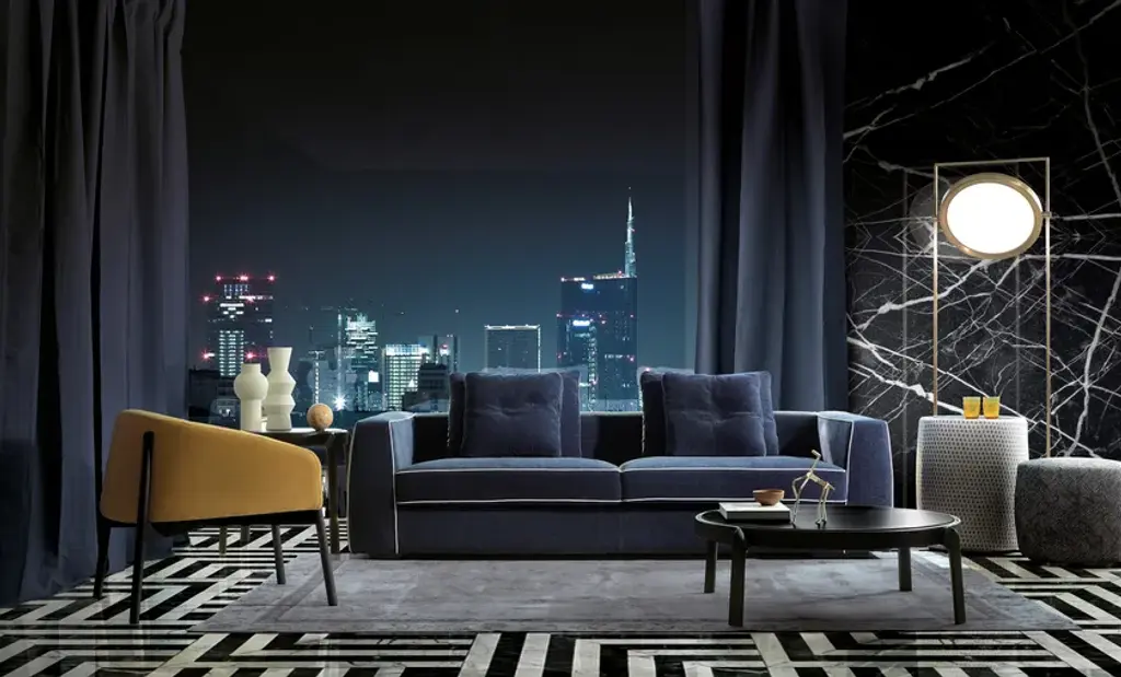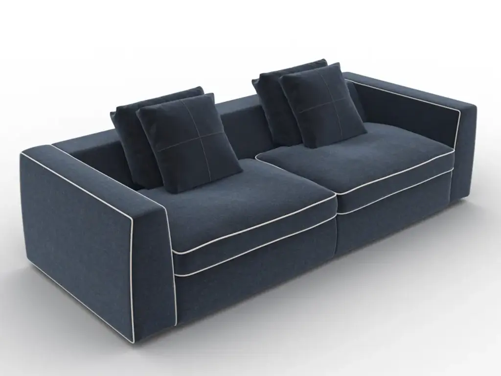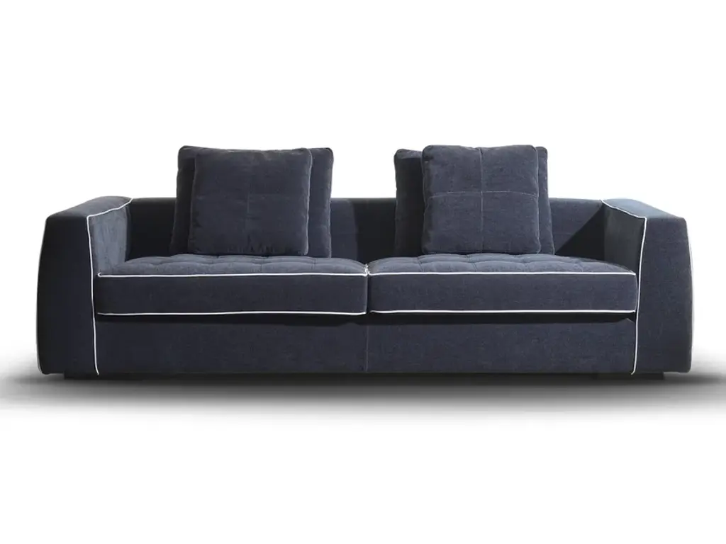 2 back cushions 65x15x50 cm included.Clay, also in quilted version, it is a sofa with essential shapes, a perfect meeting between minimal design,exclusive elegance and absolute confort.Clay surprises with its beatifull workmanship and unparelleled comfort.- Frame: made of fir wood and plywood panels, the spring support is obtained with interwoven elastic straps 90mm wide, covered with T25 and T40 differentiated density polyurethane foam and cotton cloth.- Padding: seat cushions and back cushions in sterilized goose down with insert in T35 and T40 differentiated density polyurethane and covered in cotton ovoid leather or T35 and T40 differentiated density polyurethane foam, covered with Dacron fibre coupled with cotton.- Cover: fully removable in the fabric version. In the leather version, only the cushions are removable.- Base in Walnut or Wengè stained Beech and ground support with felt.