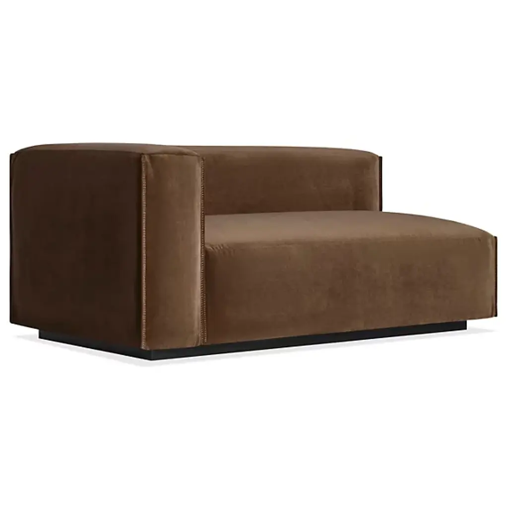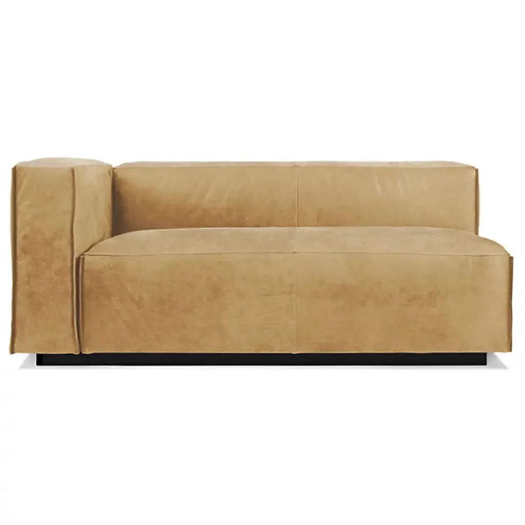 The Cleon Left Arm Sofa from Blu Dot exudes contemporary style. Your sofa features a streamlined geometric design oriented with the armrest on the left side. Tailored upholstery over the wood frame and steel springs creates a structured look that withstands heavy traffic while ensuring lasting comfort. The polyester-cotton blend fabric with upholstery maintains its crisp appearance over long periods of time. With its precise shape and uncluttered look, Cleon celebrates minimalism, making it versatile.