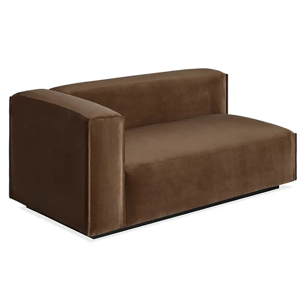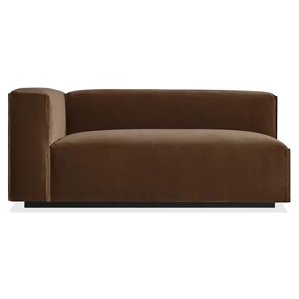 The Cleon Left Arm Sofa from Blu Dot exudes contemporary style. Your sofa features a streamlined geometric design oriented with the armrest on the left side. Tailored upholstery over the wood frame and steel springs creates a structured look that withstands heavy traffic while ensuring lasting comfort. The polyester-cotton blend fabric with upholstery maintains its crisp appearance over long periods of time. With its precise shape and uncluttered look, Cleon celebrates minimalism, making it versatile.