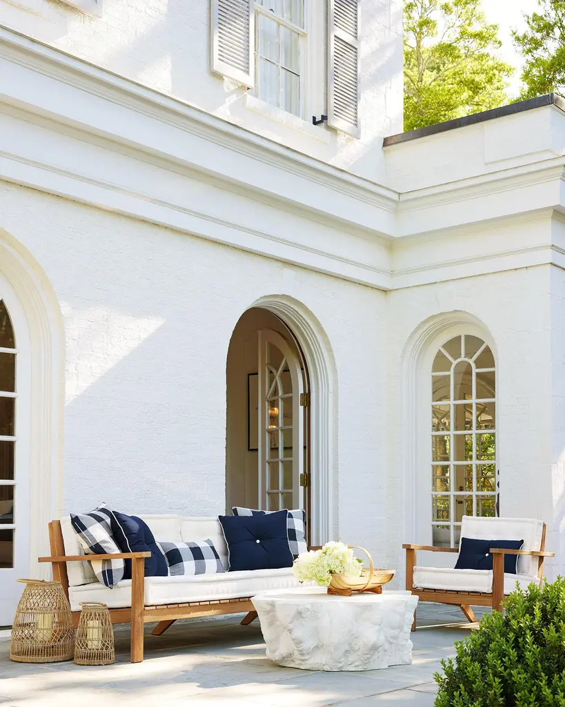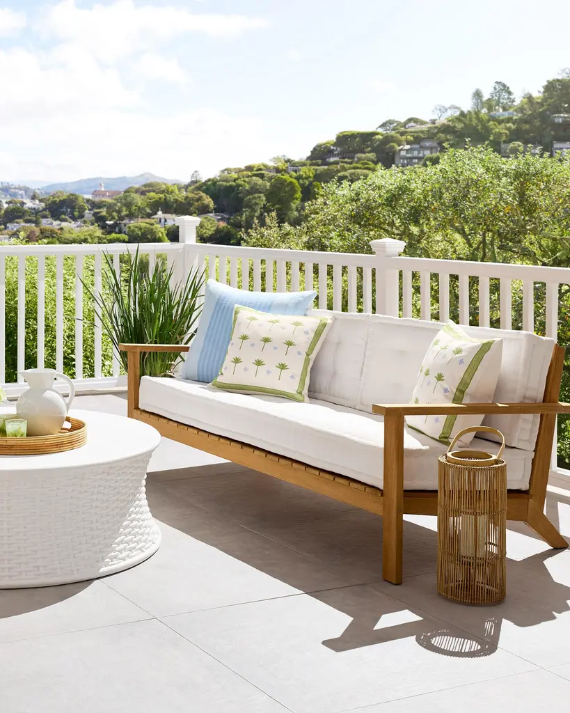 A streamlined silhouette crafted of the finest teak. Deep seats for lounging. Ages gracefully.