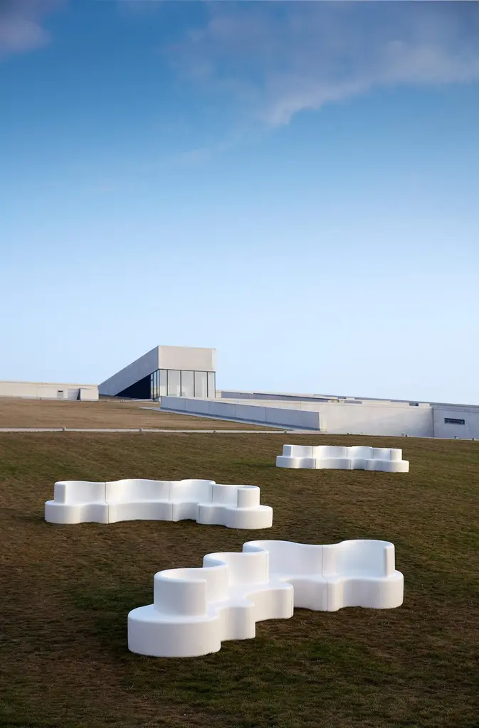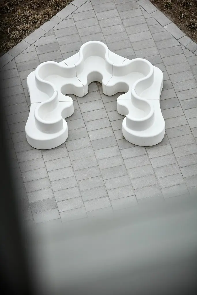 Cloverleaf right unit sofa in-and-outdoor in white by Verner Panton. Charging unit can be added - for indoor use only.Modular sofa system consisting of right, left, middle and extended unitMaterial:Rotational molded PE PolyethyleneProduct dimensions:L: 114.5 cm (45.1”)W: 115.5 cm (45,3”)H: 80 cm (31.5“)Seat height: 40 cm (15.7”).