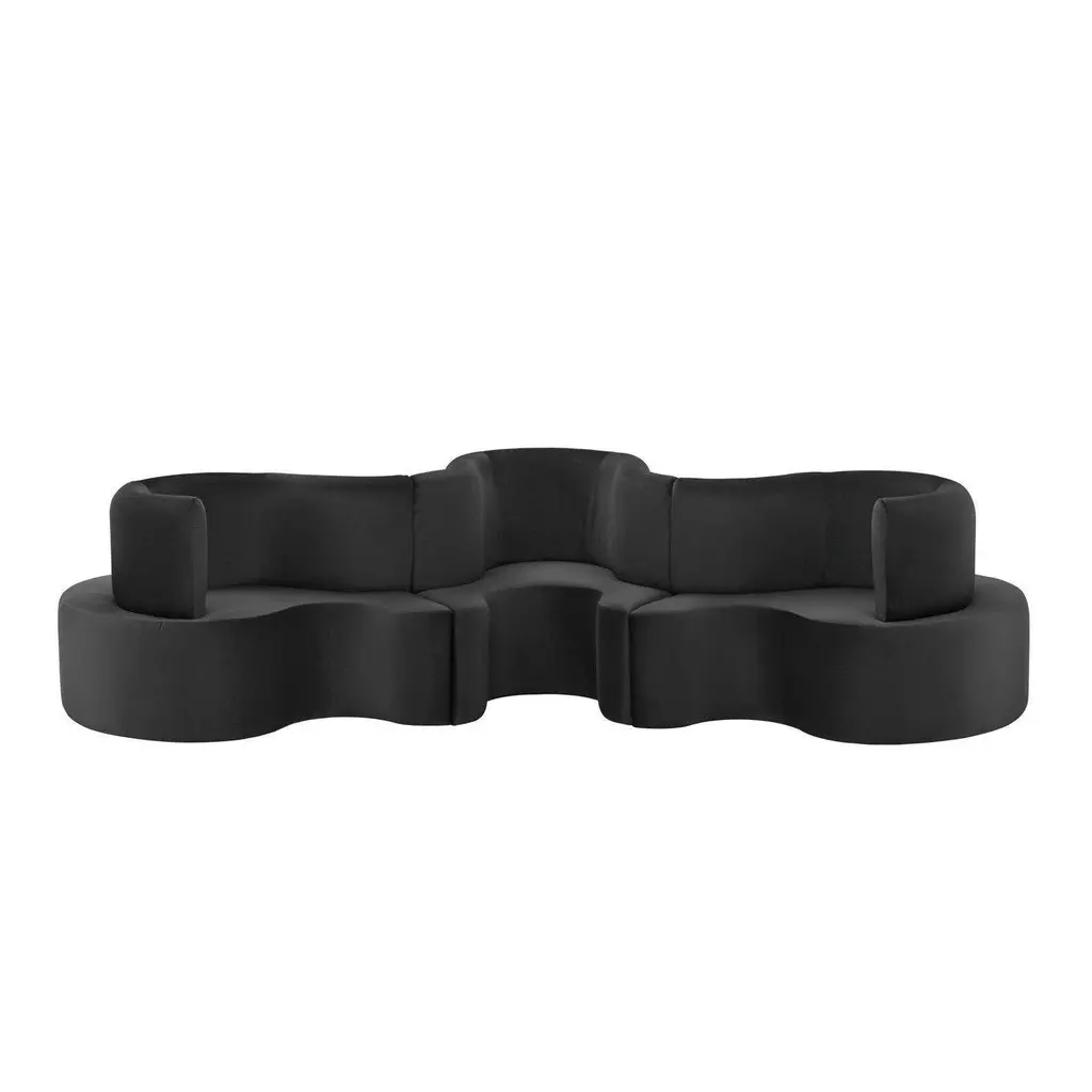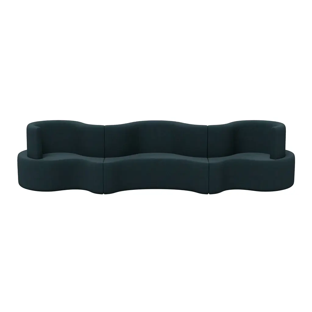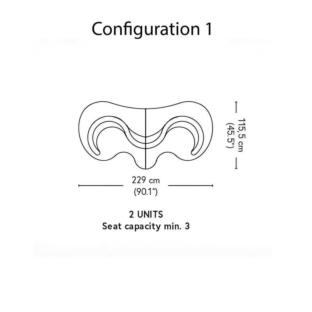 Sweeping, sculptural curves shape this modular seating system, designed to support shared experiences while maintaining personal comfort. The Cloverleaf Sofa is composed of interlocking units that provide seating on both the inner and outer sides, encouraging conversation from multiple angles. Each section is constructed with a durable wooden frame and high-resilience CMHR foam, then fully upholstered in a range of fabric options. With flexible configurations and optional plinth bases, the system can be adapted to suit various spaces, from open lounges to more defined seating areas.