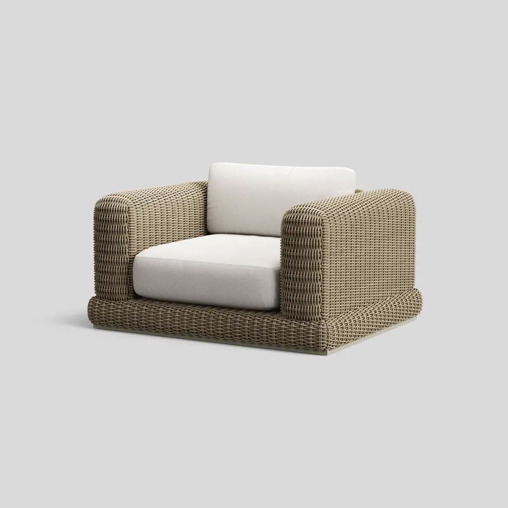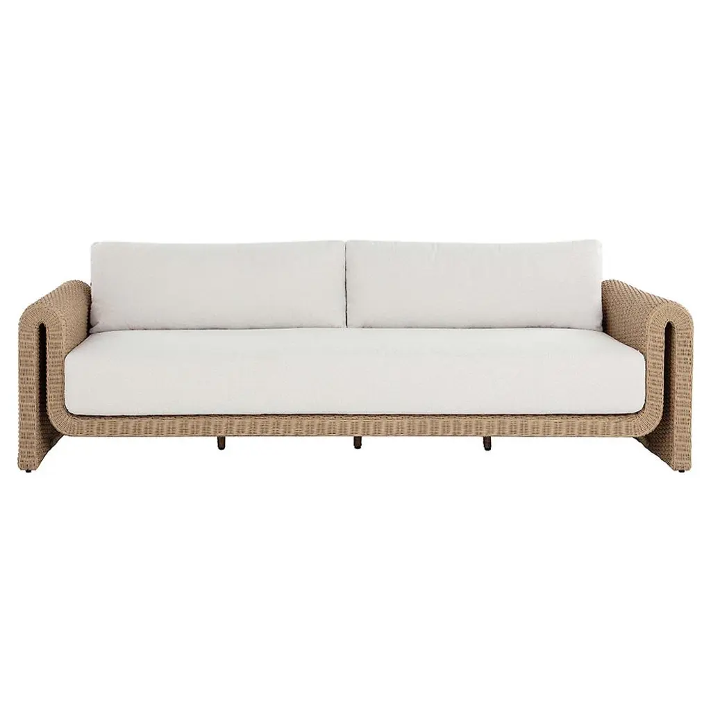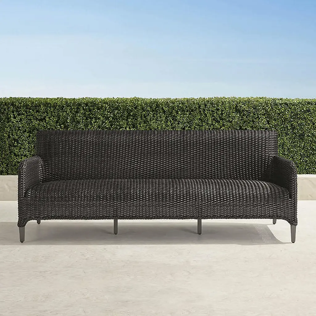 The Coast Outdoor 2,5 Seater Sofa from Cane-line features a curved backrest design that creates an intimate seating experience through its handwoven Cane-line Weave construction. This compact sofa accommodates two and a half people comfortably while maintaining a footprint suitable for smaller spaces like balconies or patios. The flowing lines of the woven frame provide both structural support and visual appeal, with weather-resistant fibers that maintain their appearance through multiple seasons. The sofa's lightweight construction allows for easy repositioning, while the curved profile naturally encourages relaxed seating positions that promote comfort during extended use periods.