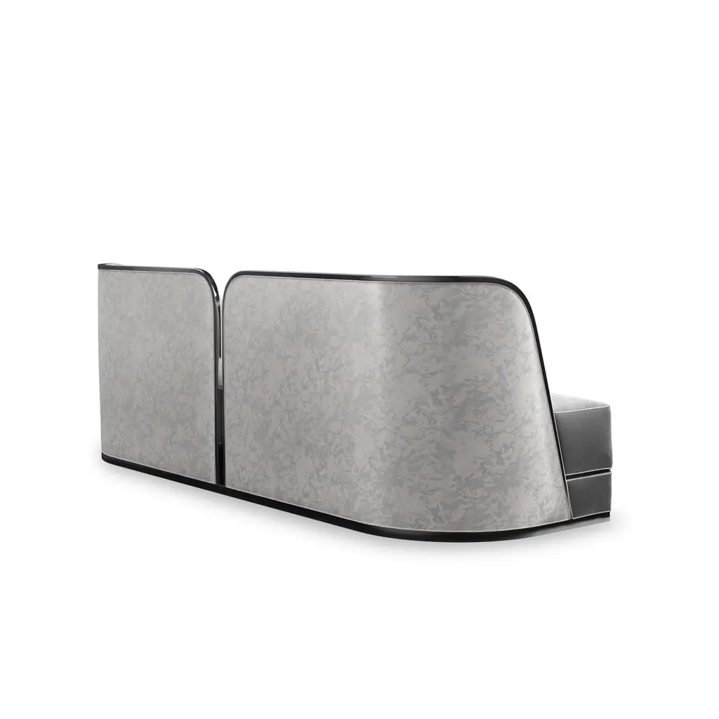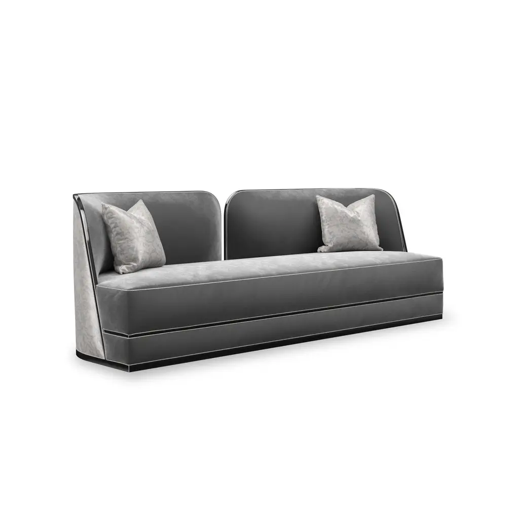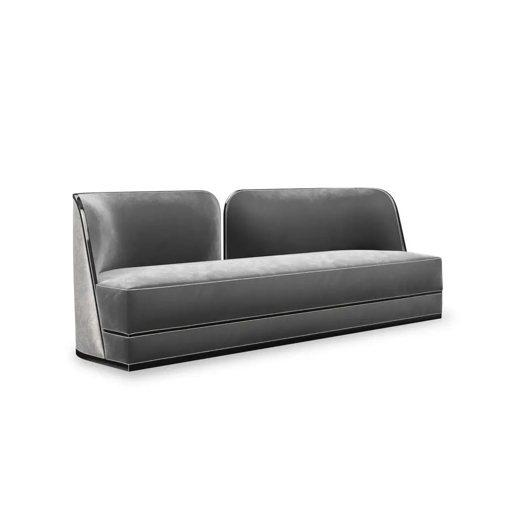 Colette Sofa by Memoir EssenceDimensions: D 80 x W 220 x H 75 cm.Materials: Velvet PRS, satin ZNC and lacquer.Also available in client's fabric. Please contact us.Colette Sofa is a statement on this collection, presenting a twist between a strong masculine character and a feminine elegance in the details. This sofa can give a special touch to your living room or hotel lounge.Memoir Essence Interiors has been writing its memoirs day by day, inspired in every detail lived through a feminine world, this world brings the most delicate imaginary. Jewelry, fashion, architecture, music, art and materials are Memoir’s inspirations to materialize a collection of design pieces of furniture, upholstery, lighting and accessories.The use of noble materials like marble, brass, veneers, gold and silver leaf, Swarovski crystals as other decorative and fine materials, combined with handwork techniques as casted brass, hand-whickered fabric ribbons, gold leaf appliance, marble cutted and puzzled pieces, provide the needed essence to tell memoirs through the designed pieces and the interiors they fulfill.This collection mostly handmade and focused on details and material nobility is made in Portugal, bringing handwork techniques that are part of Portuguese history, applied in a current and differentiated way, delivering timeless pieces to your special projects. Acquire Memoir is the opportunity to travel through the feminine essence over design and experience a unique “memoir” of timelessness and exclusivity.Writing is first chapter in 2016, after a journey of inspirational research, forecasting and design, Memoir made its first appearance at Maison et Objet, Paris.Since then Memoir is “writing” memories adding new materials, designs, techniques and appearances around the world, as in Paris, London or UAE.Memoir will continue this journey, always motivated by the inspiration possibilities in the many delicate details found in feminine world.Tell your memoires with this collection and be a memorialist yourself…