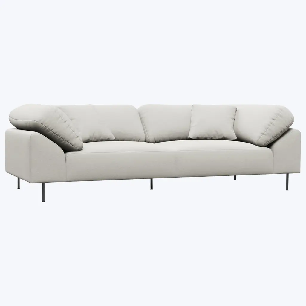 Merging Scandi cool with unmatched softness, WOUD’s Collar 2.5 Seat Sofa is a perfect choice for elevated everyday living. Designed by Meike Harde, this inviting sofa features a voluminous silhouette, soft corners, and sleek metal legs. The continuous back cushion serves as a collar that cradles you in a soft embrace. Pair with the Collar Ottoman. Crafted in Estonia. Available in Alpine Natural, Barnum Brown, Barnum Off-White, Cyber Dark Grey, and Cyber Light Grey.
