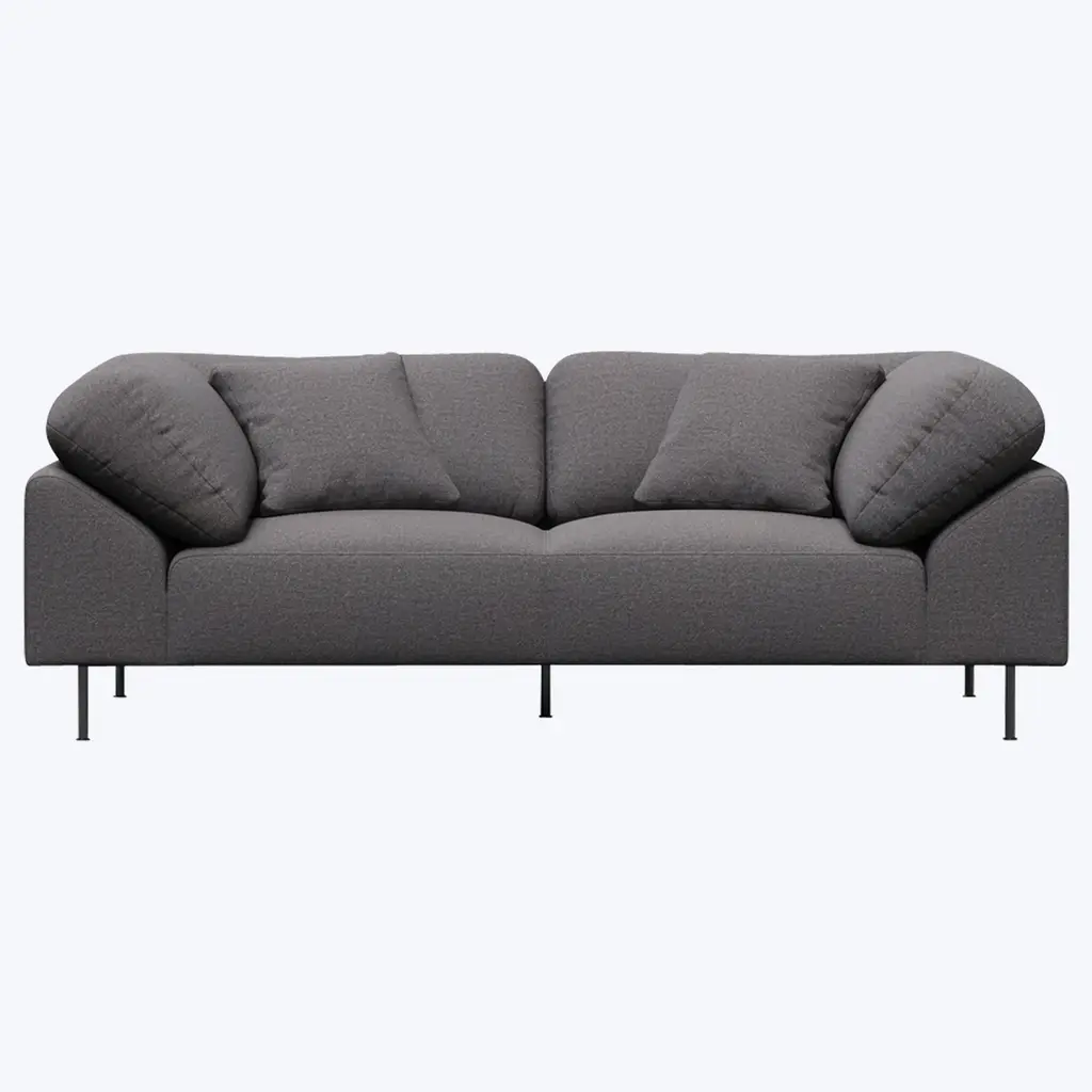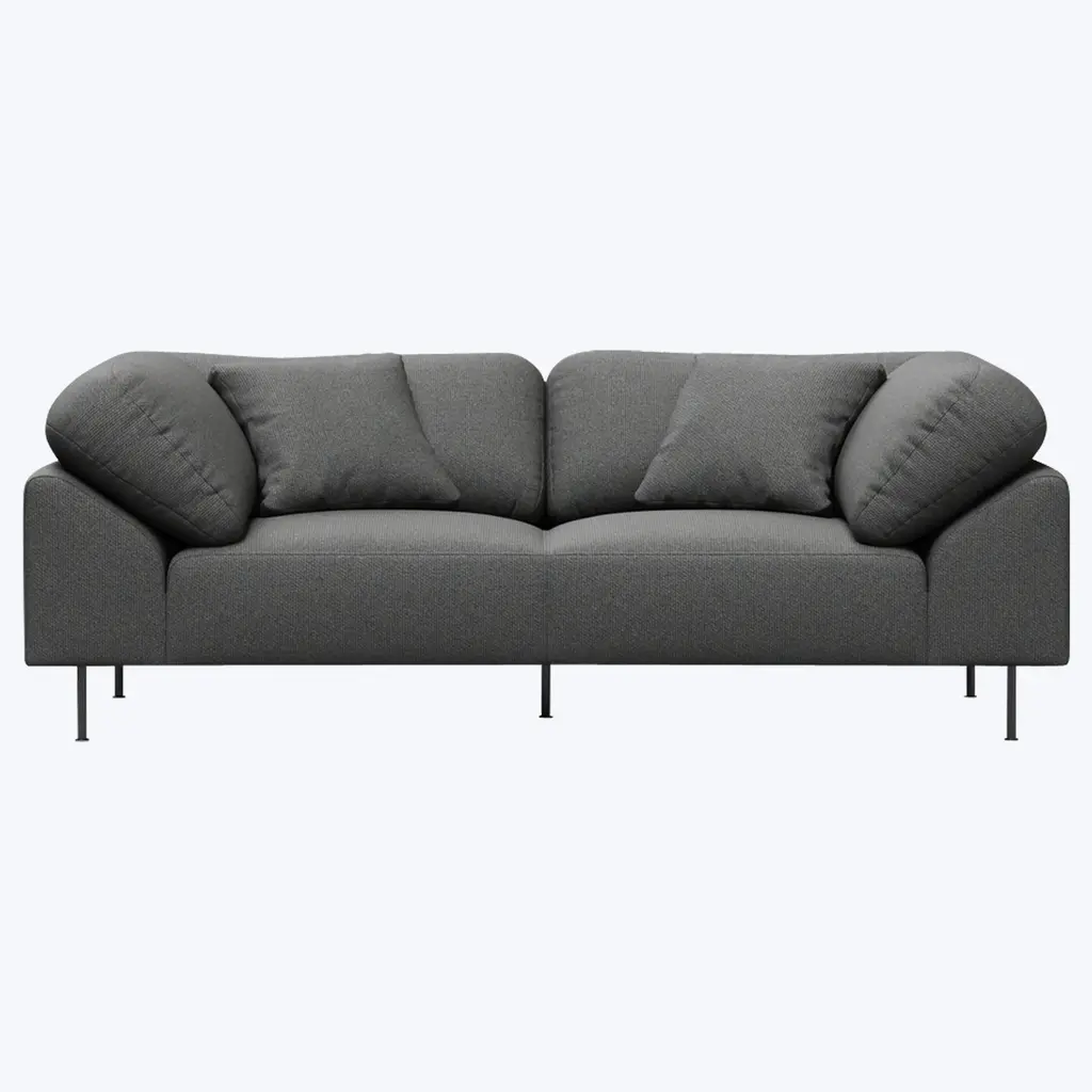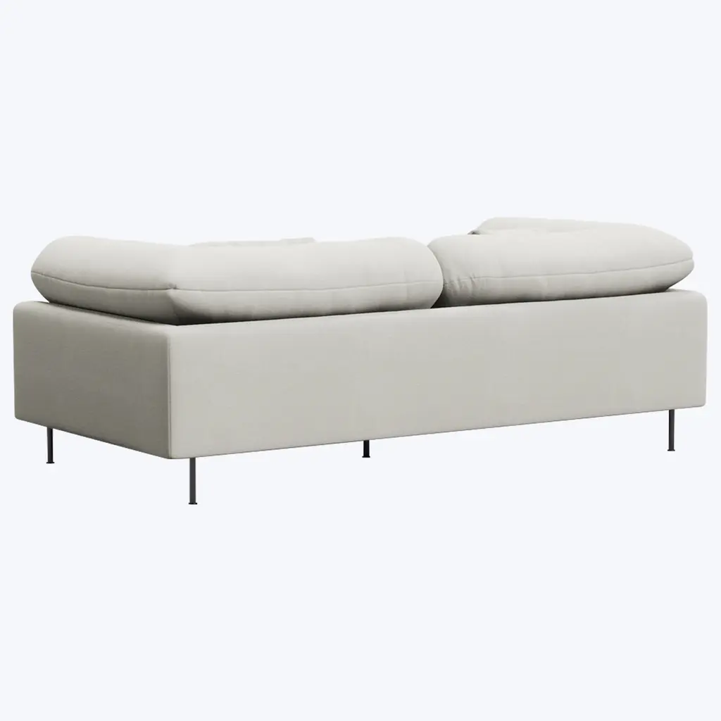 Discover the Collar 2 Seat Sofa by WOUD. Designed by Meike Harde, this inviting sofa features a voluminous silhouette, soft corners, and sleek metal legs. The continuous back cushion serves as a collar that cradles you in a soft embrace. Pair with the Collar Ottoman. Crafted in Estonia. Available in Alpine Natural, Barnum Brown, Barnum Off-White, Cyber Dark Grey, and Cyber Light Grey.
