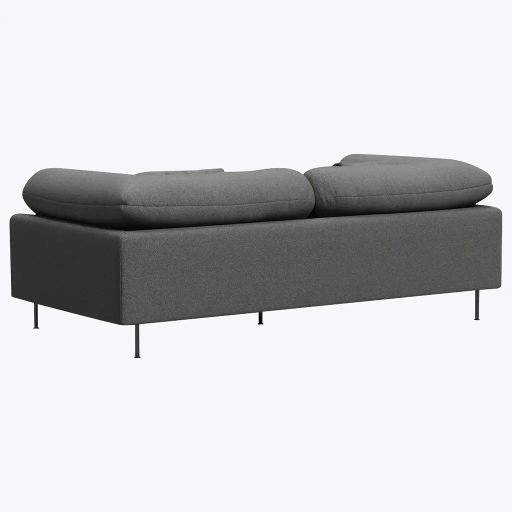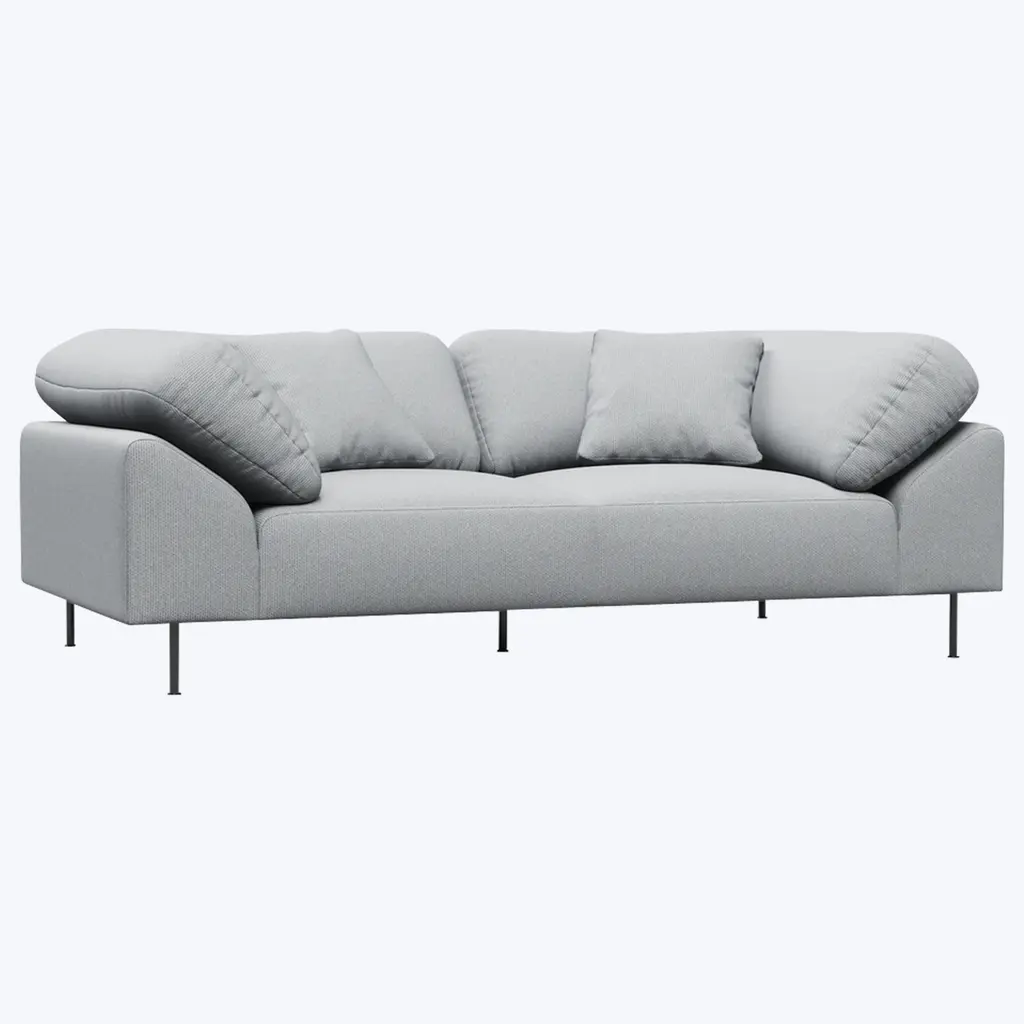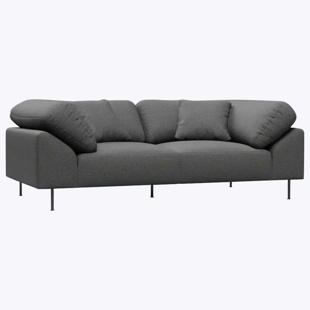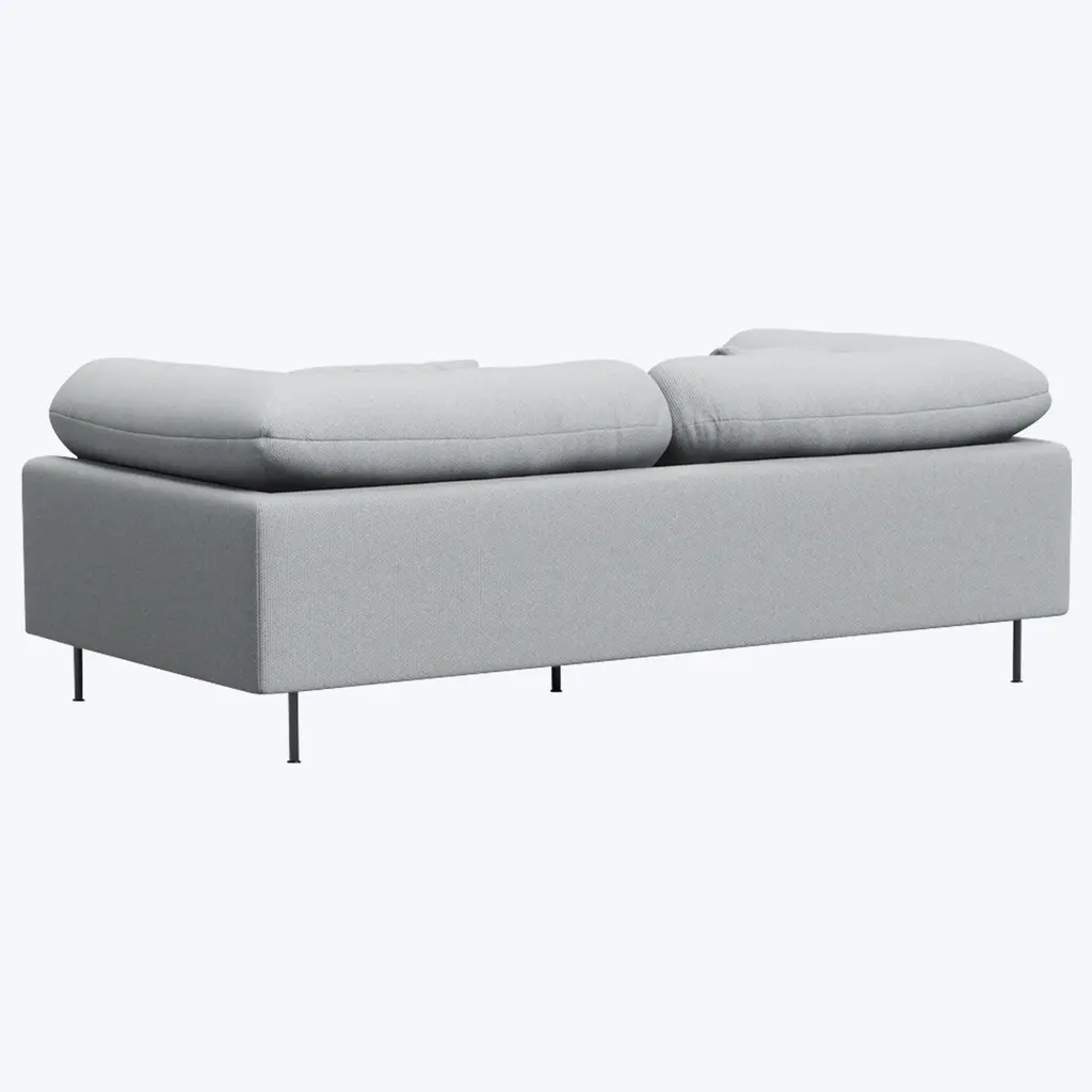 Discover the Collar 2 Seat Sofa by WOUD. Designed by Meike Harde, this inviting sofa features a voluminous silhouette, soft corners, and sleek metal legs. The continuous back cushion serves as a collar that cradles you in a soft embrace. Pair with the Collar Ottoman. Crafted in Estonia. Available in Alpine Natural, Barnum Brown, Barnum Off-White, Cyber Dark Grey, and Cyber Light Grey.