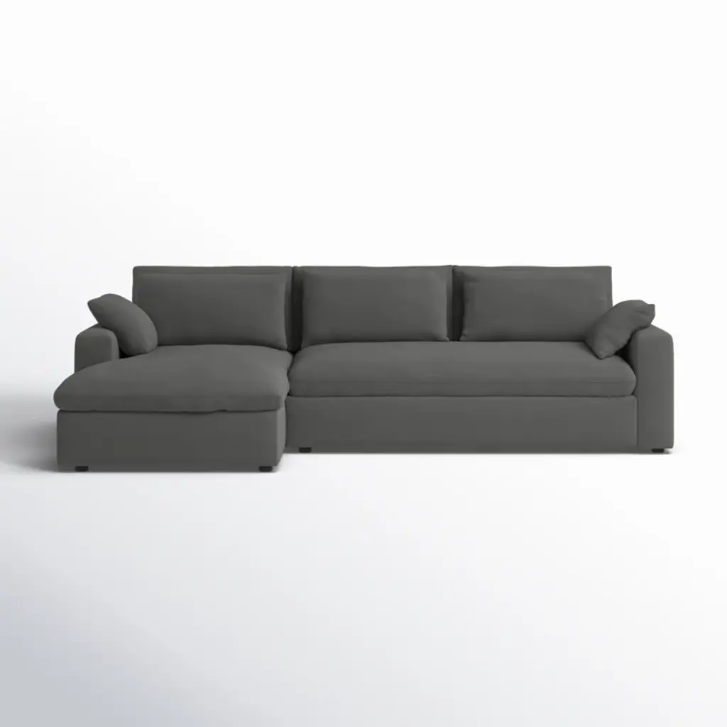 The Collar Open Right End Sofa from Woud offers a thoughtful accompaniment to contemporary interiors. An expressive Scandi-style design from the mind of Meike Harde, it places her multidisciplinary expertise on full display, relying on her experienced eye for textile applications to soften the angular lines of the robust yet visually light sofa structure. Each side of the sofa features a delta shape that keeps a collar-style cushion in place, while a memory foam fill beneath the rich fabric offers embracing and cloud-like comfort.