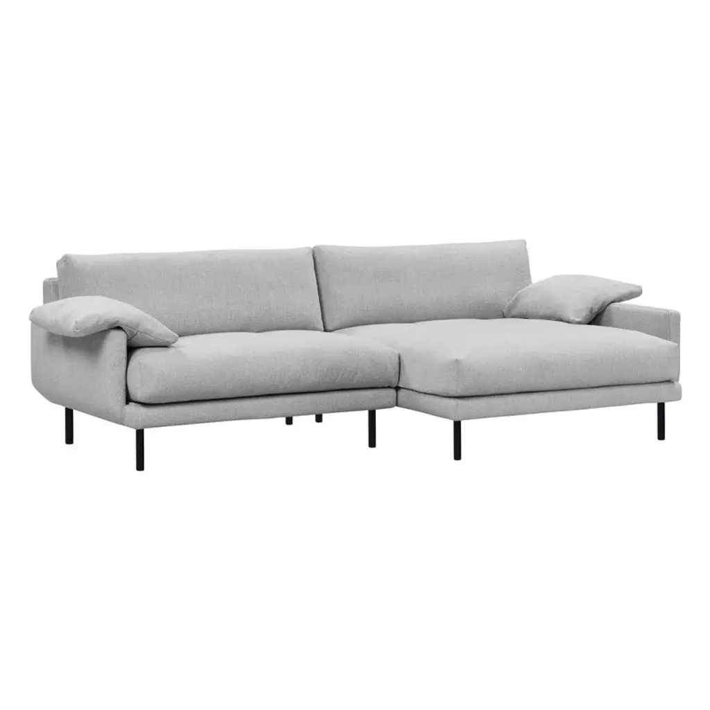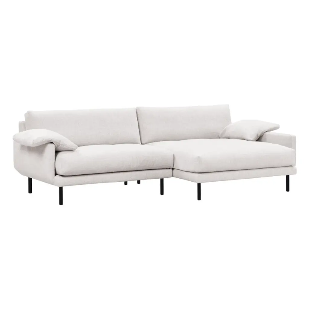 The Collar Open Right End Sofa from Woud offers a thoughtful accompaniment to contemporary interiors. An expressive Scandi-style design from the mind of Meike Harde, it places her multidisciplinary expertise on full display, relying on her experienced eye for textile applications to soften the angular lines of the robust yet visually light sofa structure. Each side of the sofa features a delta shape that keeps a collar-style cushion in place, while a memory foam fill beneath the rich fabric offers embracing and cloud-like comfort.
