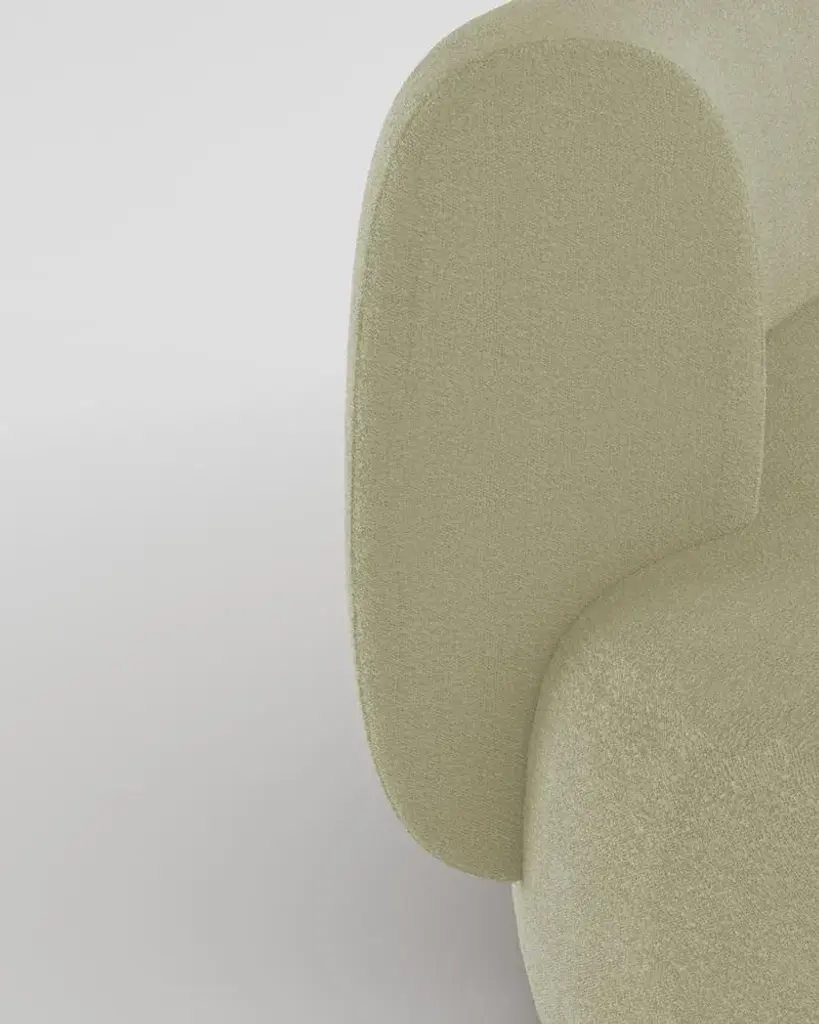 Hug sofa is defined by clean, simple lines and a distinctive armrest detail. The armrest, half overlapping the seat cushion, creates an interlocking detail between the two elements, while the padding, firm and welcoming at the same time, communicates comfort.
