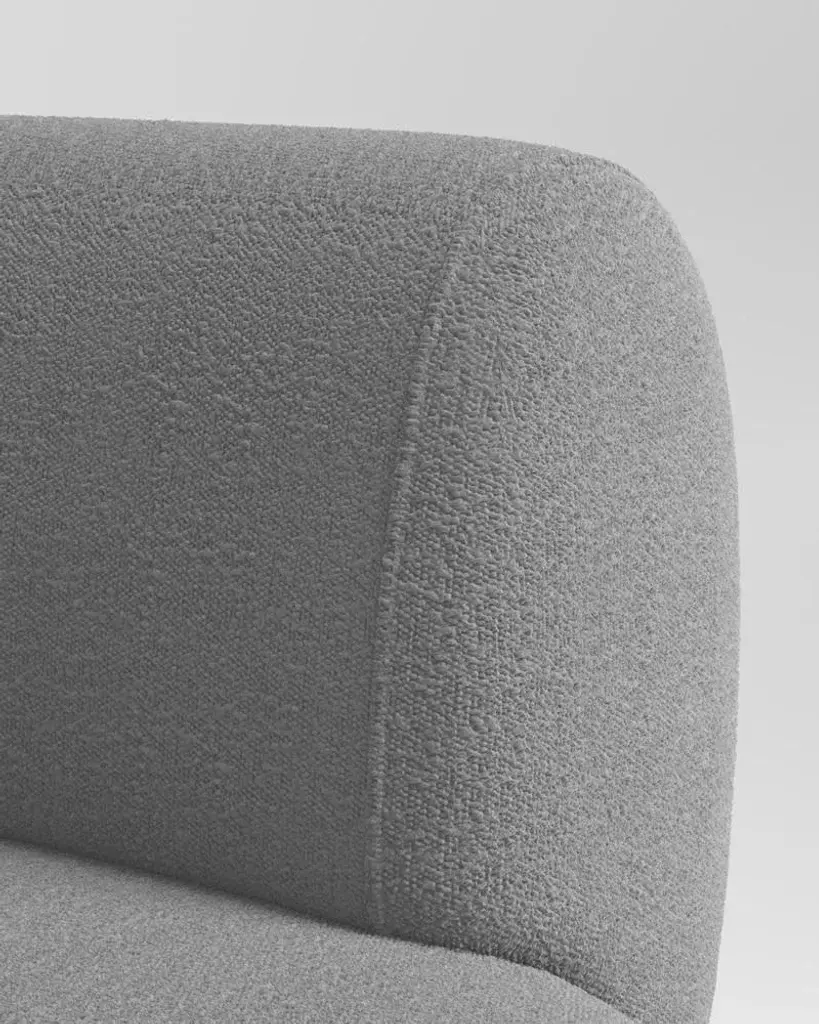 Hug sofa is defined by clean, simple lines and a distinctive armrest detail. The armrest, half overlapping the seat cushion, creates an interlocking detail between the two elements, while the padding, firm and welcoming at the same time, communicates comfort.