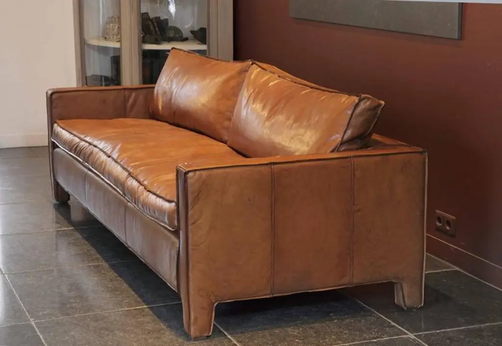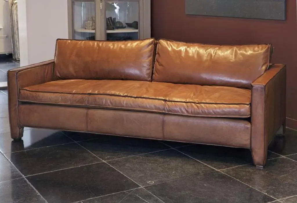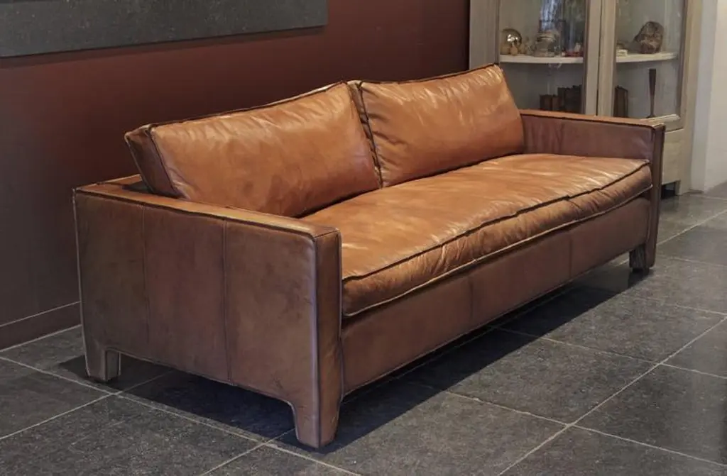 A comfortable, modern and sleek calfskin leather three-seat sofa / couch.This item is not in stock and has a delivery time of ± 10 weeks.