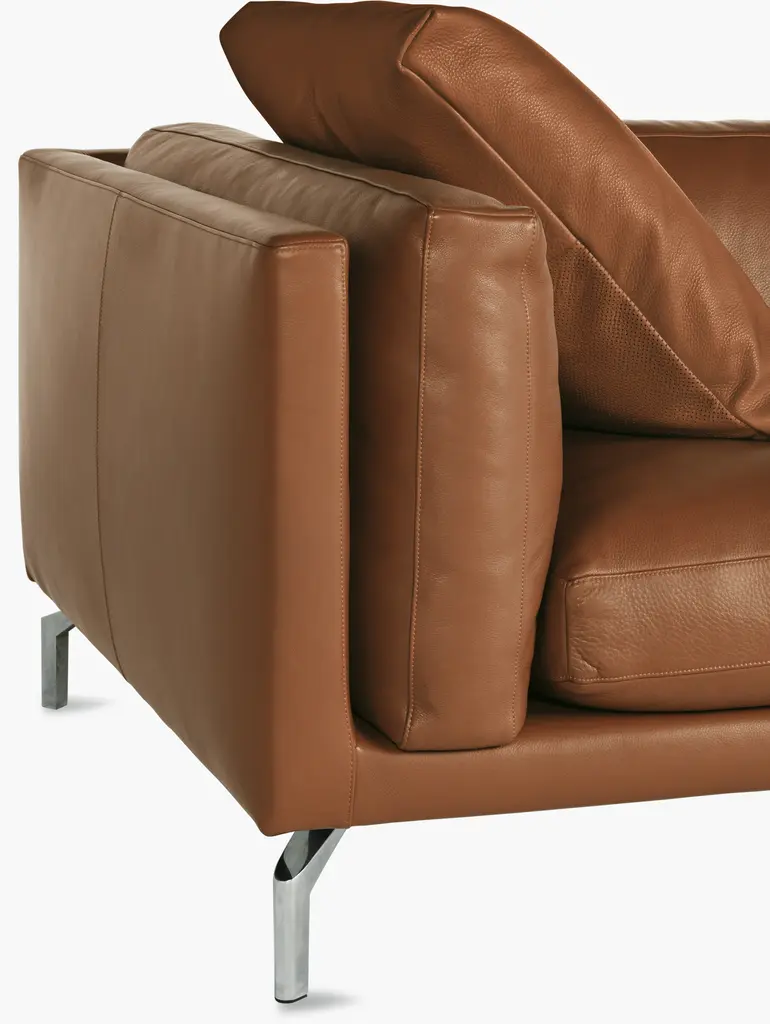 To create his Como Collection (2007), Italian designer Giorgio Soressi enlisted one of the most widely respected companies in Italy. Located near Lake Como, this family-run business is still producing best-in-class sofas and chairs for many prestigious retailers to this day, blending design, research, cutting-edge technologies and artisanal techniques. The elegant and extremely well-constructed Como Collection is built with solid steel frames and cast-aluminum legs. Contrasting that heft and stability are cushions that scream, “You've got to sit here!" with their goose feather filling and variable-density foam that's firmer in front for support. Made in Italy.