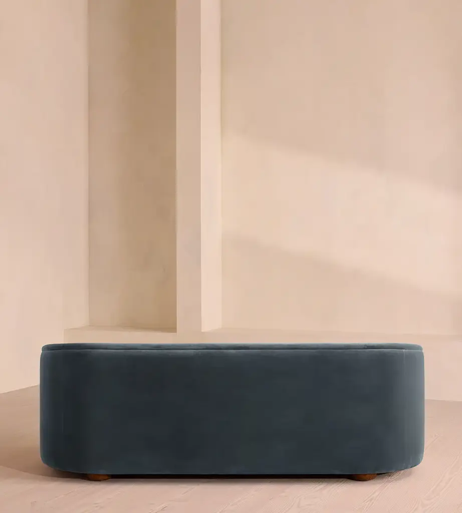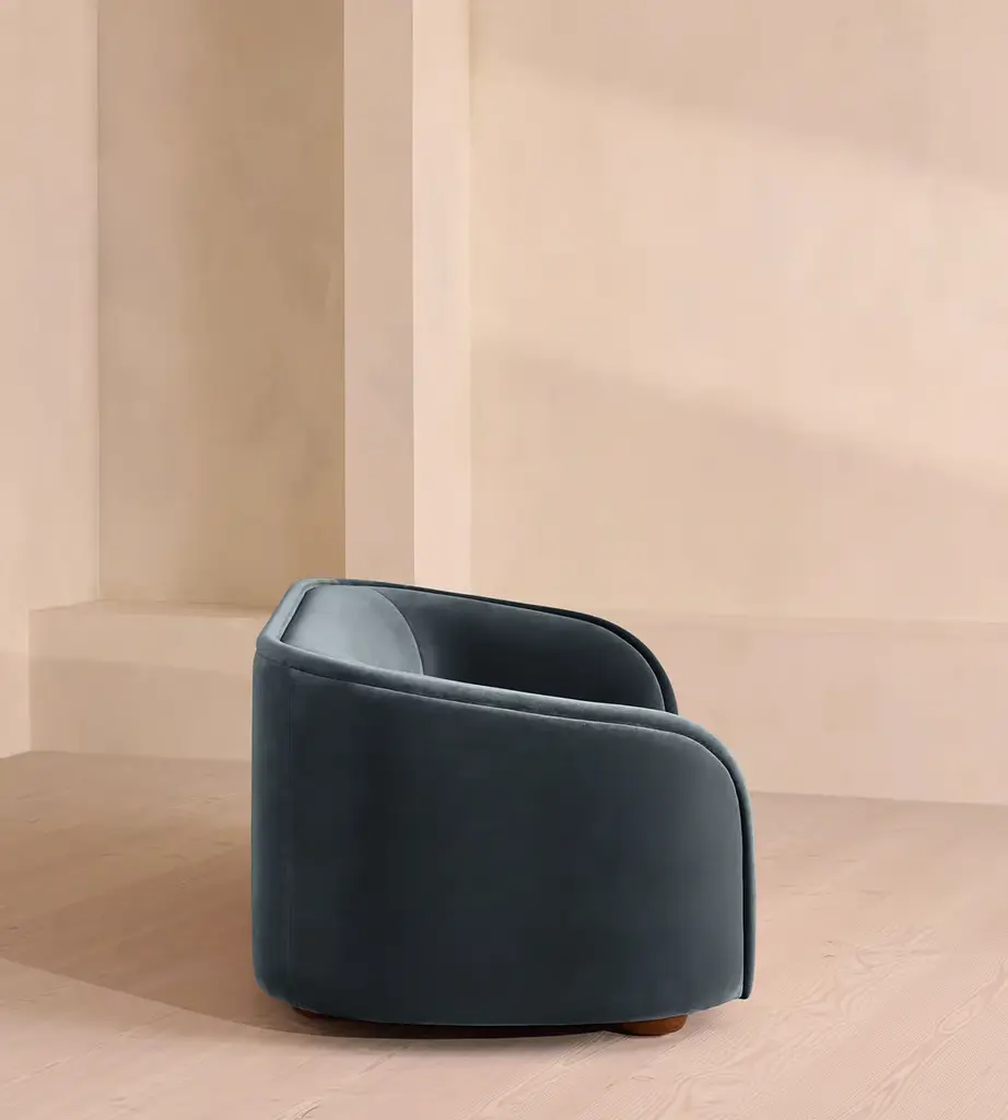 A curved backrest leads seamlessly into two arms to create a minimalist, cocooning shape. A seamless seat cushion alongside unified back and armrests give the Conall sofa a streamlined, minimalist silhouette, while the rounded sides keep it feeling cozy. It's fully upholstered in velvet, available in our full made-to-order palette, with bold, oversized piping following its curved lines.