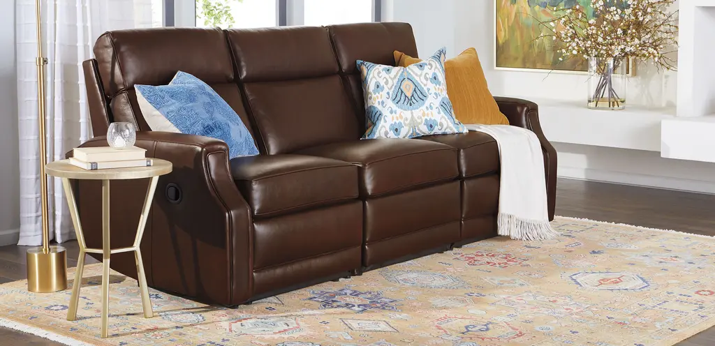 Hand-tailored leather and timeless scoop arms up the elegance in this handsome leather wall reclining sofa. A pair of reclining seats, each with a bustle back and semi-attached cushions, boasts supreme comfort fit for anything from a spy film marathon to enjoying a match of your favorite televised game.