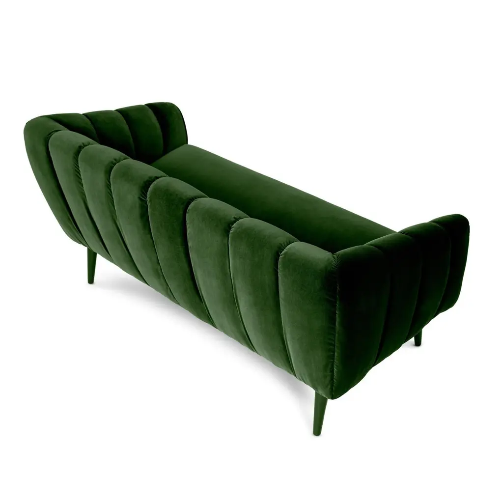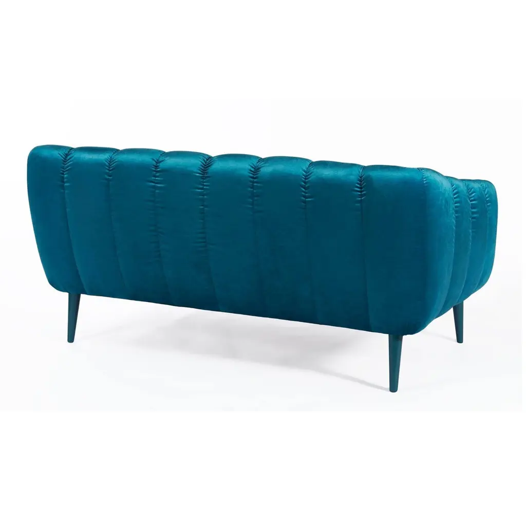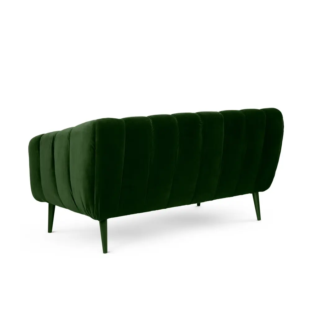 Designed with a thorough but playful attention to geometry and form, this sofa has a glamorous 60’s & 70’s sci-fi retro look. Its quilted upholstery is reminiscent of the midcentury aesthetic, with proportions suited for contemporary living spaces.Upholstery: Velvet Feet: Upholstered with Velvet , Rosewood, Ebony or Walnut veneer, Wengé stain or lacquer in all RAL colors, in matte or gloss.Handmade in Europe.Please contact us if you have any questions about customization and pricing. We will be glad to check with the factory’s technical team if sizes, finishes, and colors can be customized. We do our best to expedite production and to ship and deliver product within the listed lead time, however current lead times might be longer due to global shipping backlog and delays. These delays are out of our control and cannot be a reason to cancel an order.Our pricing includes all costs for international shipping to the U.S., as well as duties and customs clearance fees. Please be aware that local delivery within the U.S. is not included. We offer white glove, front door, and warehouse delivery options. For shipments outside the U.S., kindly reach out to us for a detailed quote.