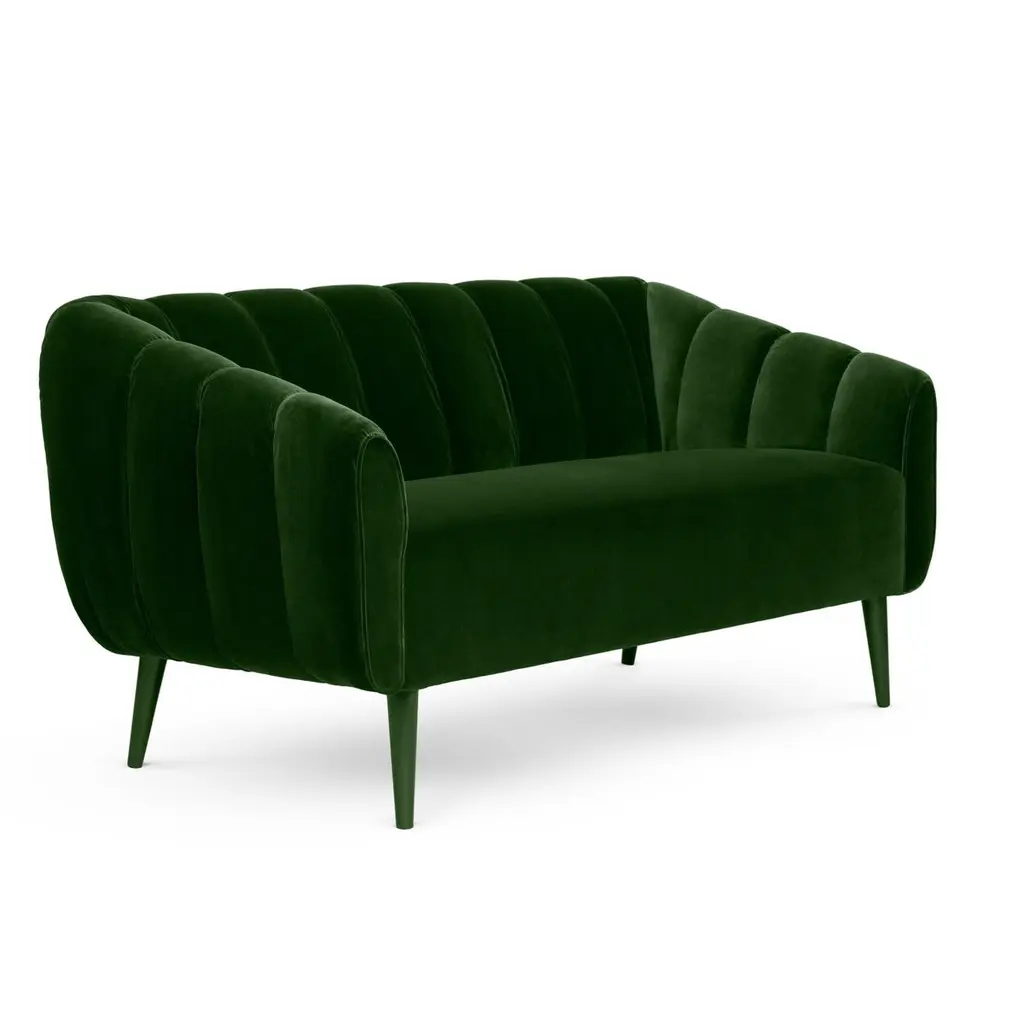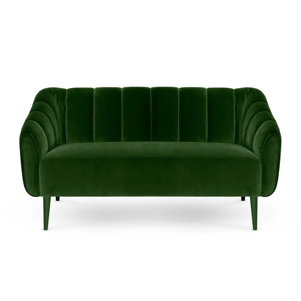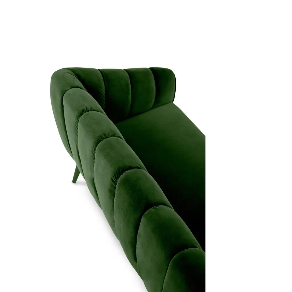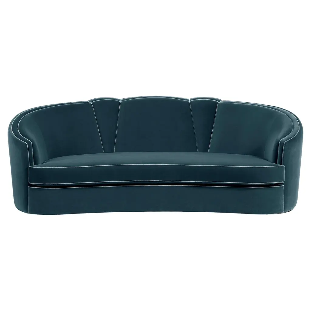 Designed with a thorough but playful attention to geometry and form, this sofa has a glamorous 60’s & 70’s sci-fi retro look. Its quilted upholstery is reminiscent of the midcentury aesthetic, with proportions suited for contemporary living spaces.Upholstery: Velvet Feet: Upholstered with Velvet , Rosewood, Ebony or Walnut veneer, Wengé stain or lacquer in all RAL colors, in matte or gloss.Handmade in Europe.Please contact us if you have any questions about customization and pricing. We will be glad to check with the factory’s technical team if sizes, finishes, and colors can be customized. We do our best to expedite production and to ship and deliver product within the listed lead time, however current lead times might be longer due to global shipping backlog and delays. These delays are out of our control and cannot be a reason to cancel an order.Our pricing includes all costs for international shipping to the U.S., as well as duties and customs clearance fees. Please be aware that local delivery within the U.S. is not included. We offer white glove, front door, and warehouse delivery options. For shipments outside the U.S., kindly reach out to us for a detailed quote.