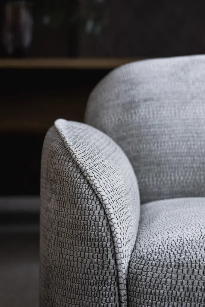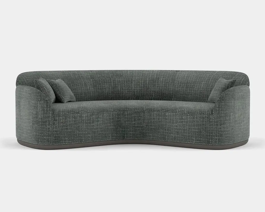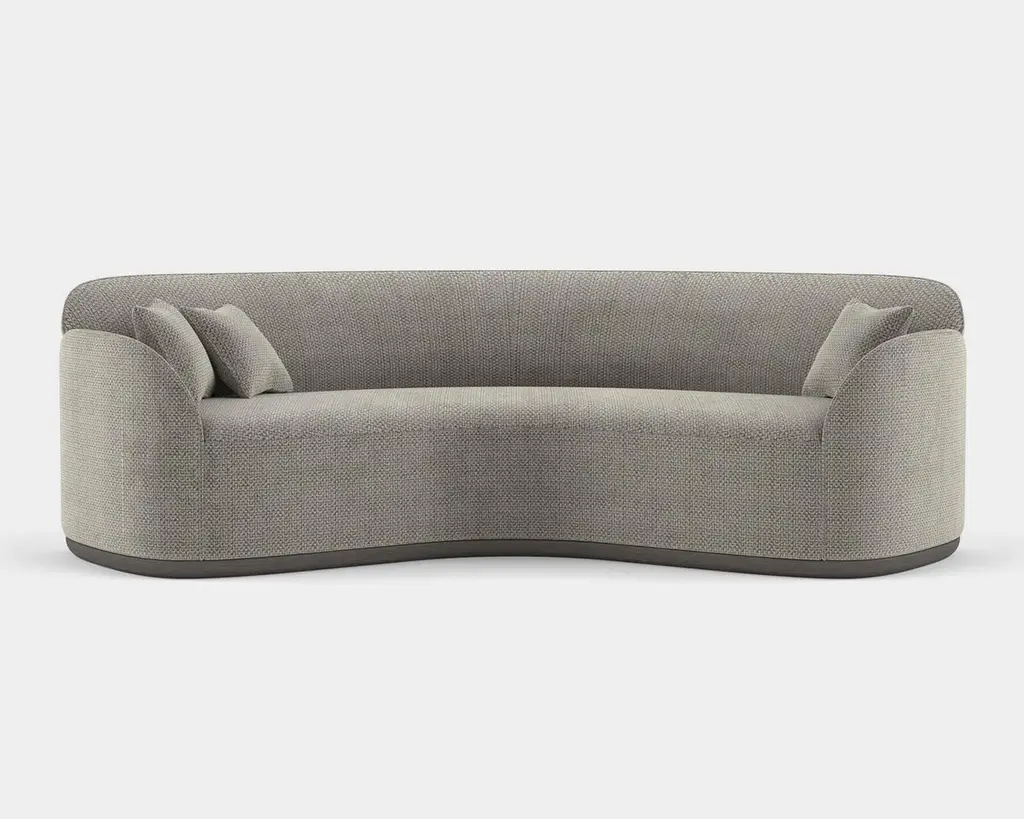 Unio Curved sofa by Poiat Designers: Timo Mikkonen & Antti Rouhunkoski Collection UNIO 2023Dimensions: H. 72 x W. 220 D. 110 cm SH. 40 (3 seaters)Model shown: Tiger Mountain Graphite - Dedar The Unio Collection, featuring an armchair and sofas, opens a new chapter for Poiat Studio & Furniture, with a focus on new furniture forms and textures. Offering a view of new and upcoming while at the same time acknowledging past decades’ influences and nostalgia, Unio Armchair combines comfort and contemporary design.The armchair has a fully upholstered plywood frame, commercial grade foam, and a solid ash plinth. The single-seater armchair can be acquired with a swivel mechanism that allows the product to rotate and revert to its original position.The selection of upholstery fabrics for Unio Collection is a carefully curated selection of fine fabrics from the industry’s most esteemed manufacturers, such as Dedar, Pierre Frey and Larsen.A winner of the Warmest Design prize at Monocle Design Awards 2022, the Unio Armchair combines influences from the past and present – focusing on soft forms and textures.