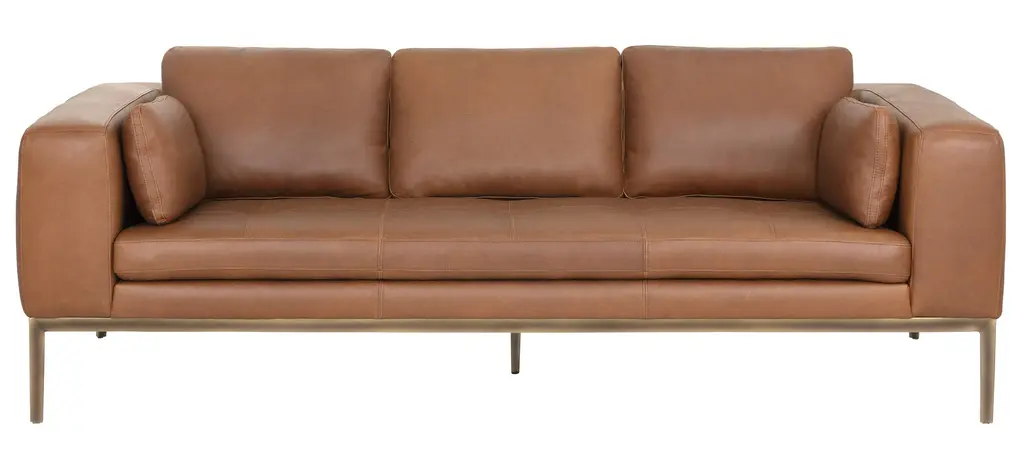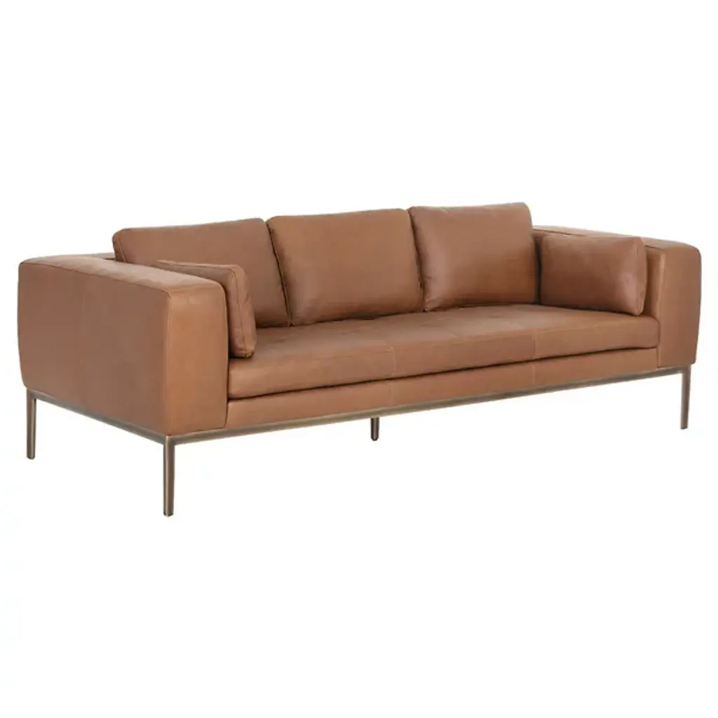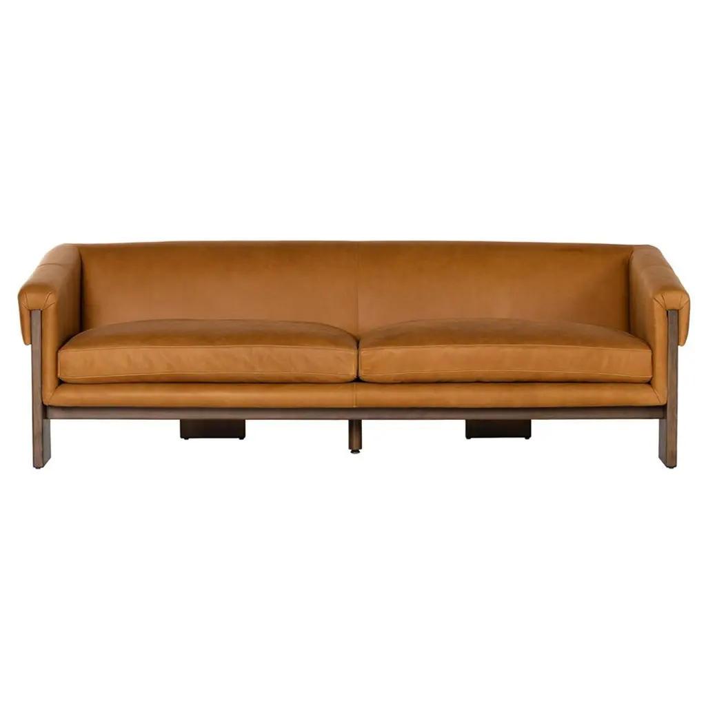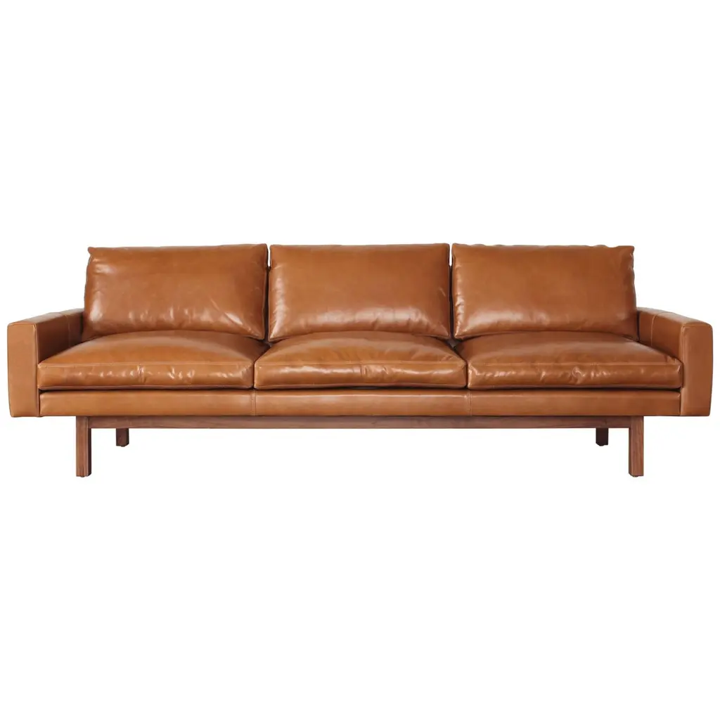 Contemporary Large Standard Sofa In Caramel Leather With Walnut Base
