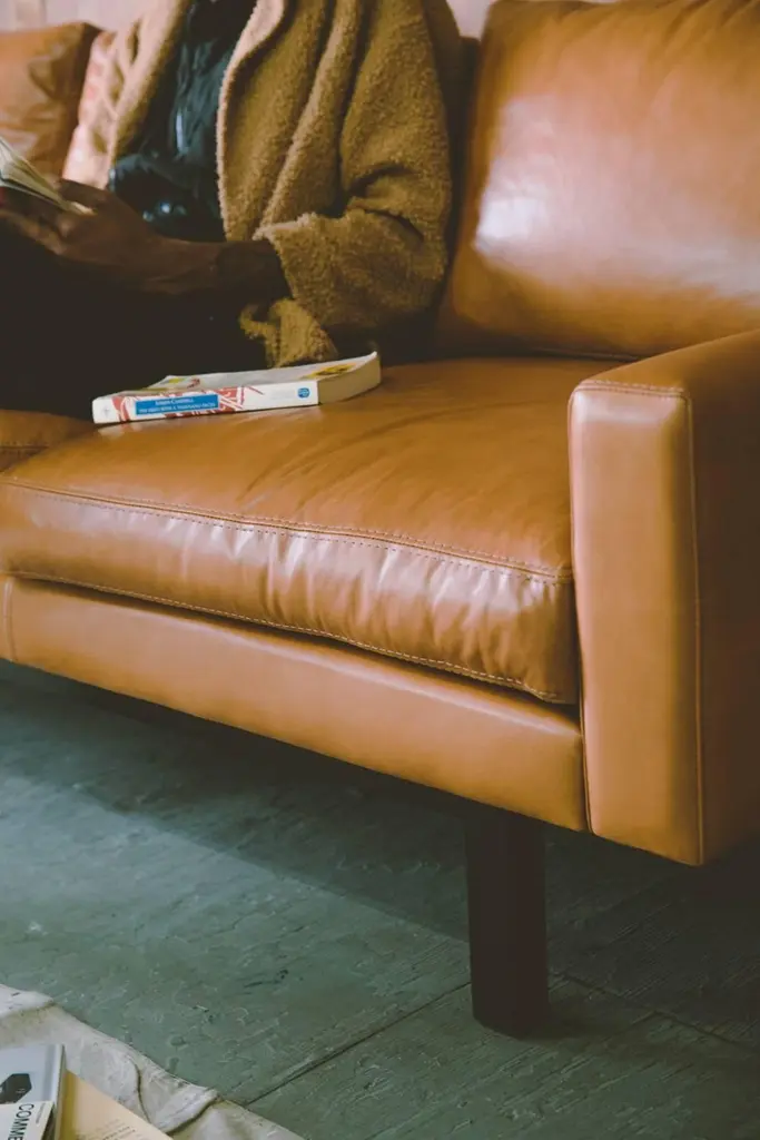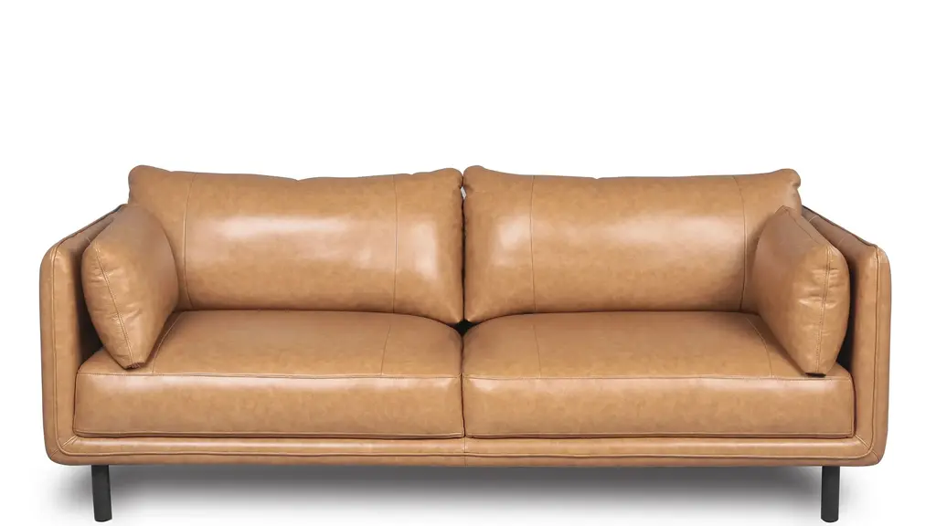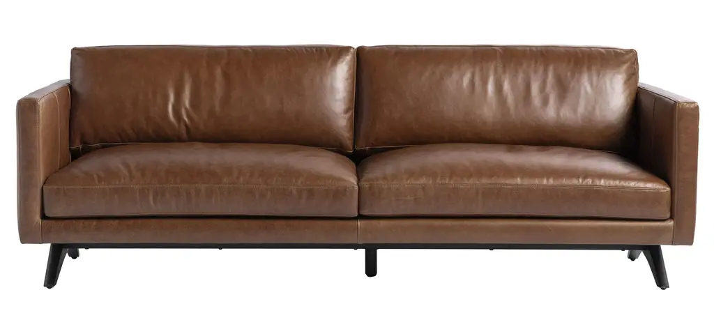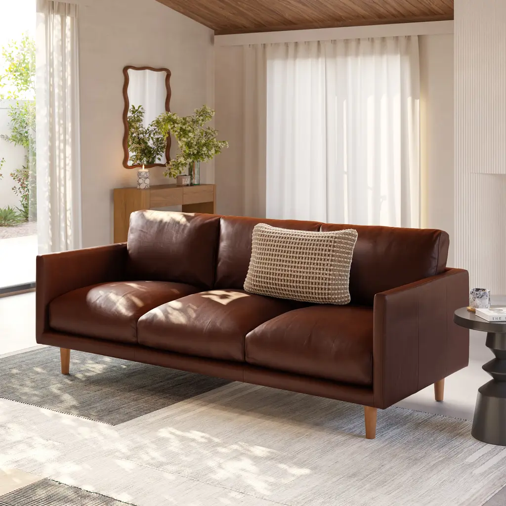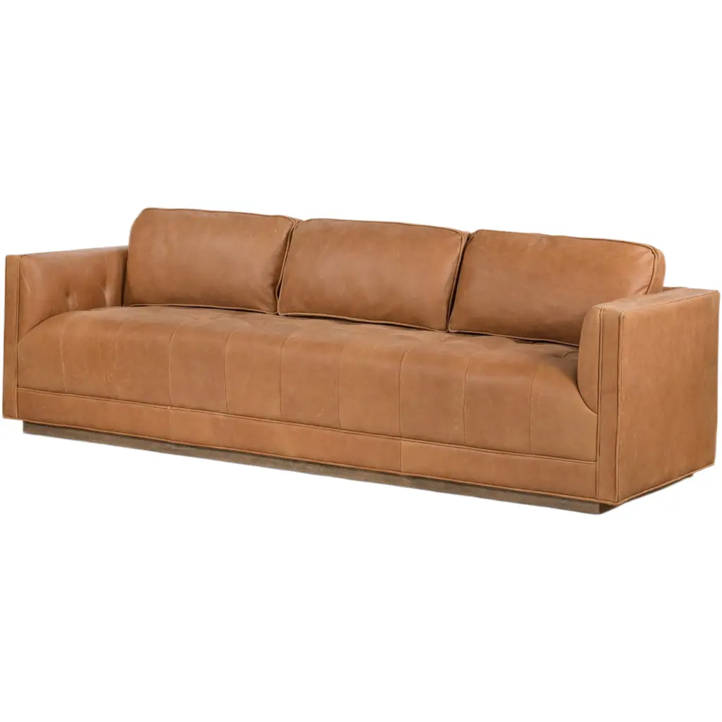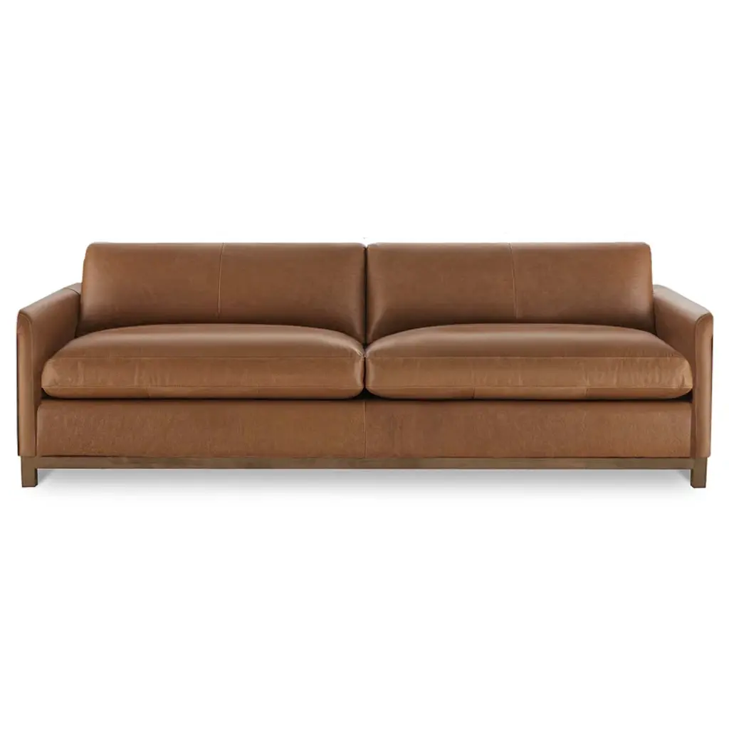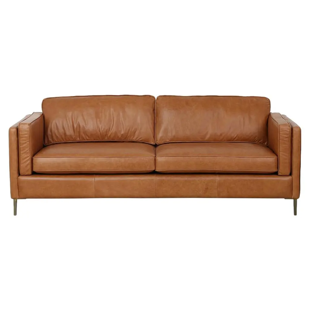 Contemporary Medium Standard Sofa In Caramel Leather With Walnut Base