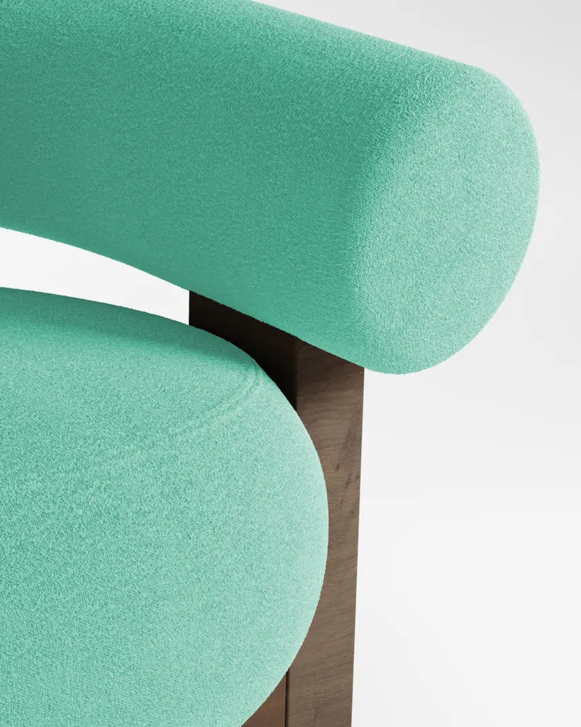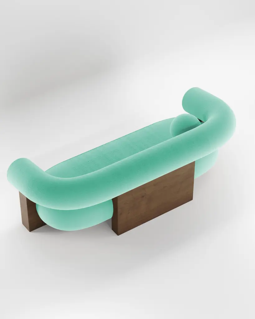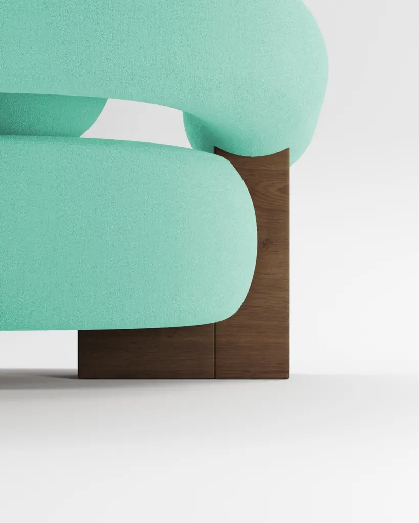 Contemporary Modern Cassete Sofa In Boucle Teal & Wood By Collector Studio