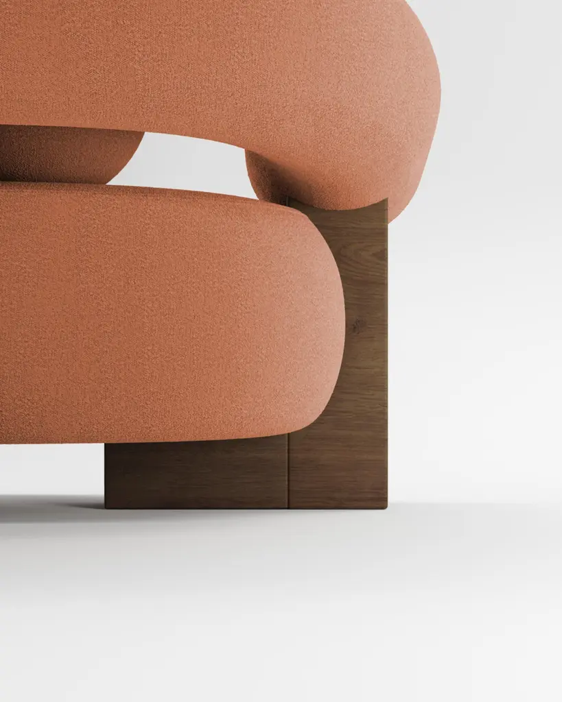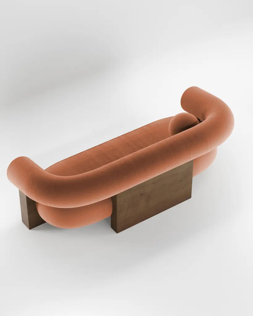 Contemporary Modern Cassete Sofa In Burnt Orange & Wood By Collector Studio