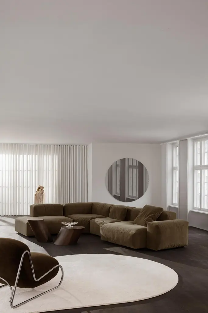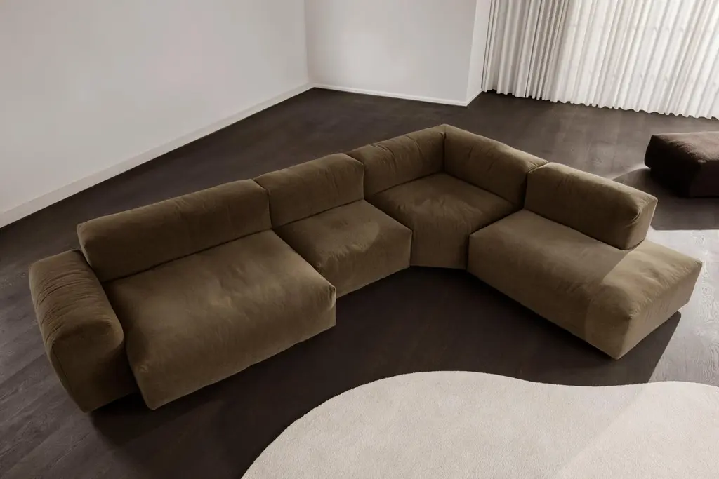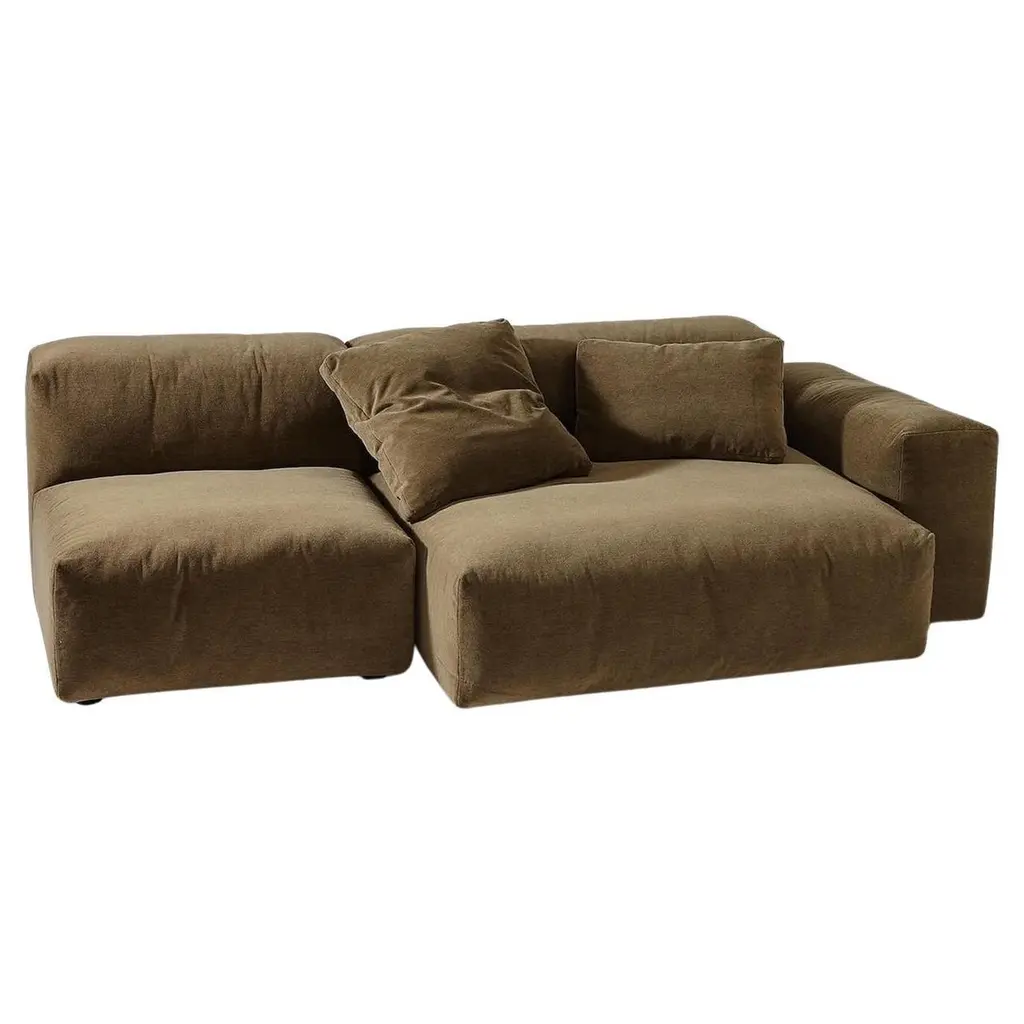 Contemporary 'Reposé' Sofa by Tommy Hyldahl & Kristian Sofus Hansen for Norr11Modular sofa: create your own configuration using all available modules. Configuration shown on main image: Modules: x 1 Large Lounge, x 1 Medium, x1 Corner, x 1 Low ArmrestFabric: Alpaca---The Reposé sofa encapsulates a sense of casual elegance. Its loose upholstery gives the sofa a distinctive, lived-in look that enhances the relaxed atmosphere it creates. As people sit and rise, the upholstery naturally forms creases, adding to its charm and reinforcing the sense of a space that feels truly lived in. Whether placed in a hotel, office, or other public setting, Reposé offers the same level of comfort and encourages you to relax and lounge more freely, meant to offer a home-away-from-home experience. Reposé is built on a modular approach that allows users to experiment with different setups, making Reposé equally suitable for both large, open areas and smaller, more intimate settings. - Built on a modular approach allowing you to create different setups.- Available with an armrest as a separate module, which is easy to attach and remove.- Features removable covers that can be easily attached and detached with a velcro closure at the bottom.