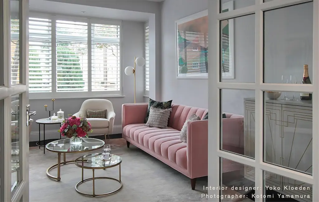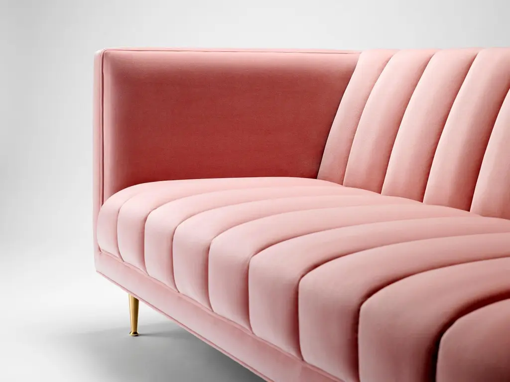 The Special Edition Fleure Two-Seater Sofa is a beautiful adaptation of the award-winning Fleure design. The Fleure range combines traditional style cues with a contemporary feel. The fluting on both seat and back offer an eye-catching effect, especially in the shown luxurious cotton velvet upholstery.Shown here upholstered in a chic Cameo pink cotton velvet, with legs in machine turned natural solid brass.Construction: solid beech frame with a coil sprung seat. Both seat and back are scalloped.Each Stuart Scott piece is built by hand in our workshop in Wiltshire, England. Nothing is mass-produced. This ensures complete attention to detail, structural integrity and sheer build quality. We never compromise. When we finish each piece, it is signed and numbered: a unique handmade masterpiece.Please note that solid brass legs carry an up-charge and there is a further up-charge for Bronzing.