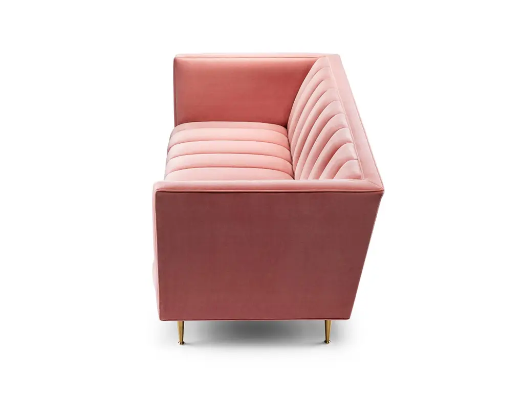 Contemporary Scalloped 2-Seater Fleure Sofa In Pink Cotton Velvet And Brass Legs
