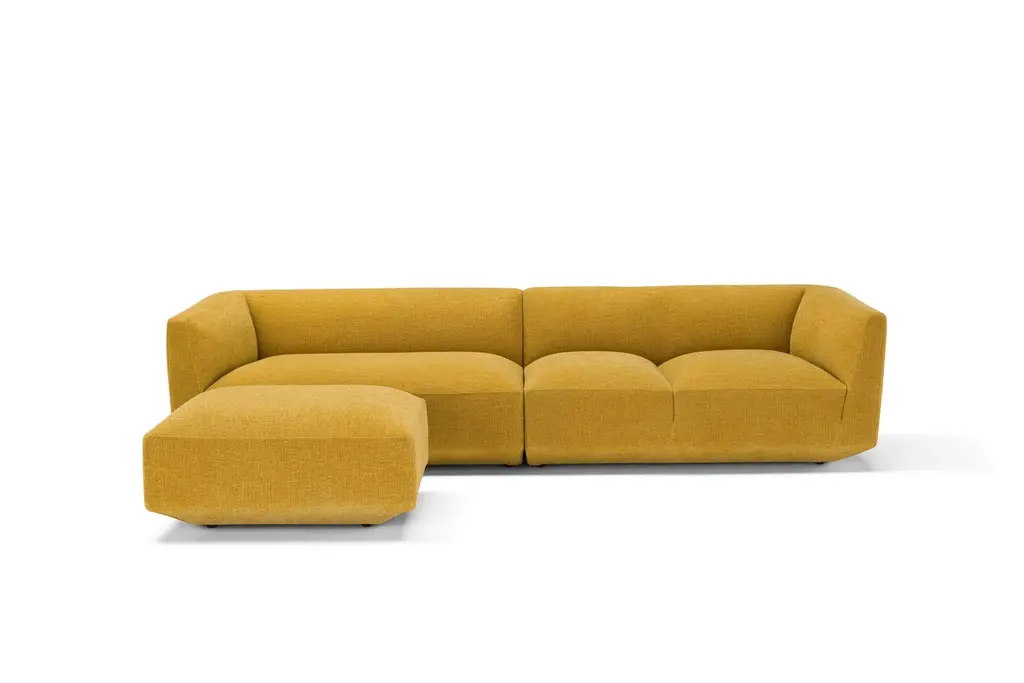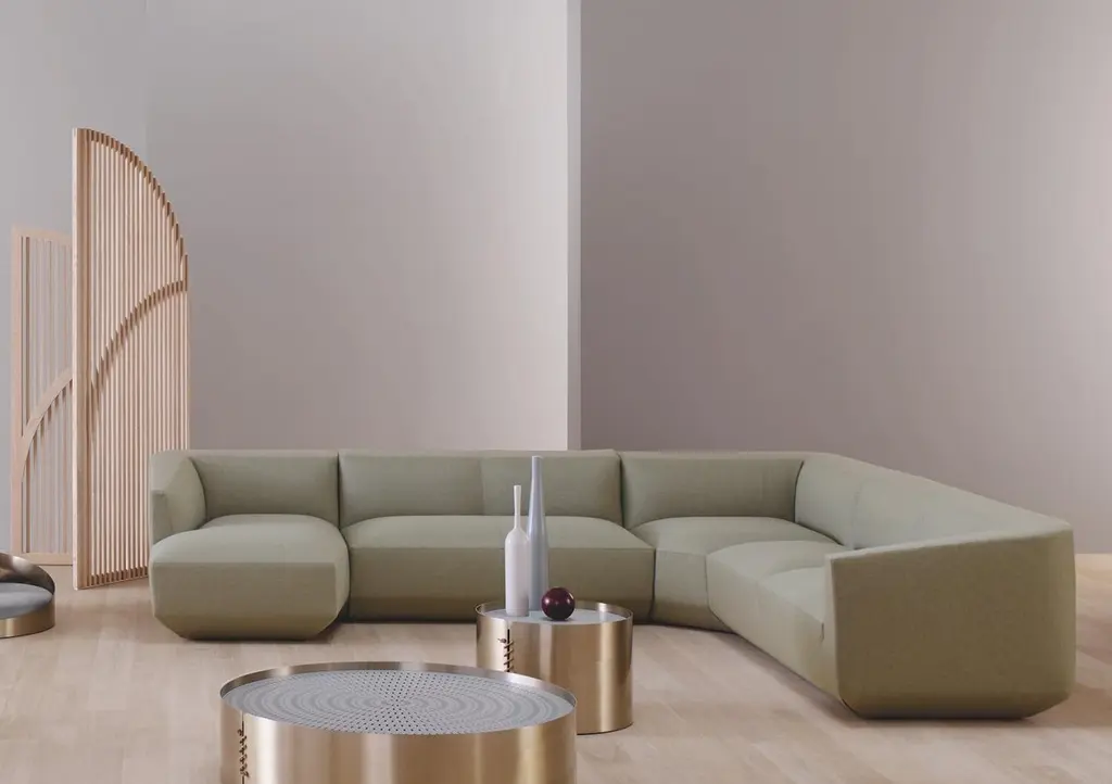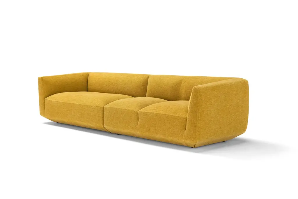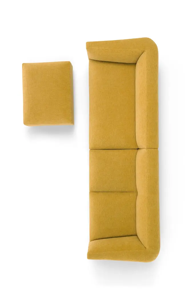 Panis sofa by Amura Lab.Setup 215l + 216.Dimensions : H. 70 x 296 x 92 cm.Fabric reference in picture : Siena 06More modules available in different fabrics and colors. “Soft shapes declinable in all possible configurations”. The iconic image of the large loaves, an authentic local cult, becomes a source of inspiration for a line of upholstery with generous, soft shapes that can be declined in all possible configurations. What tells immediately more about the the essence of the project are the cuts, which geometrise the embracing shapes of the collection, to remind precisely the cuts made on the Altamura bread dough and that, with rising, determine the classic shape. The bold and essential lines, that shape the entire collection, though never strict, create a clear link between design, nature and ancestral knowledge.Amura’s commitment is to promote the best forms of collaborations among designers, architects, artists and artisans. For this reason they try to build a sharing relationship between the arts every day, a virtuous contamination that produces hybrid products, with art, design and architecture perfectly balanced, but always characterised by the finest handmade quality.