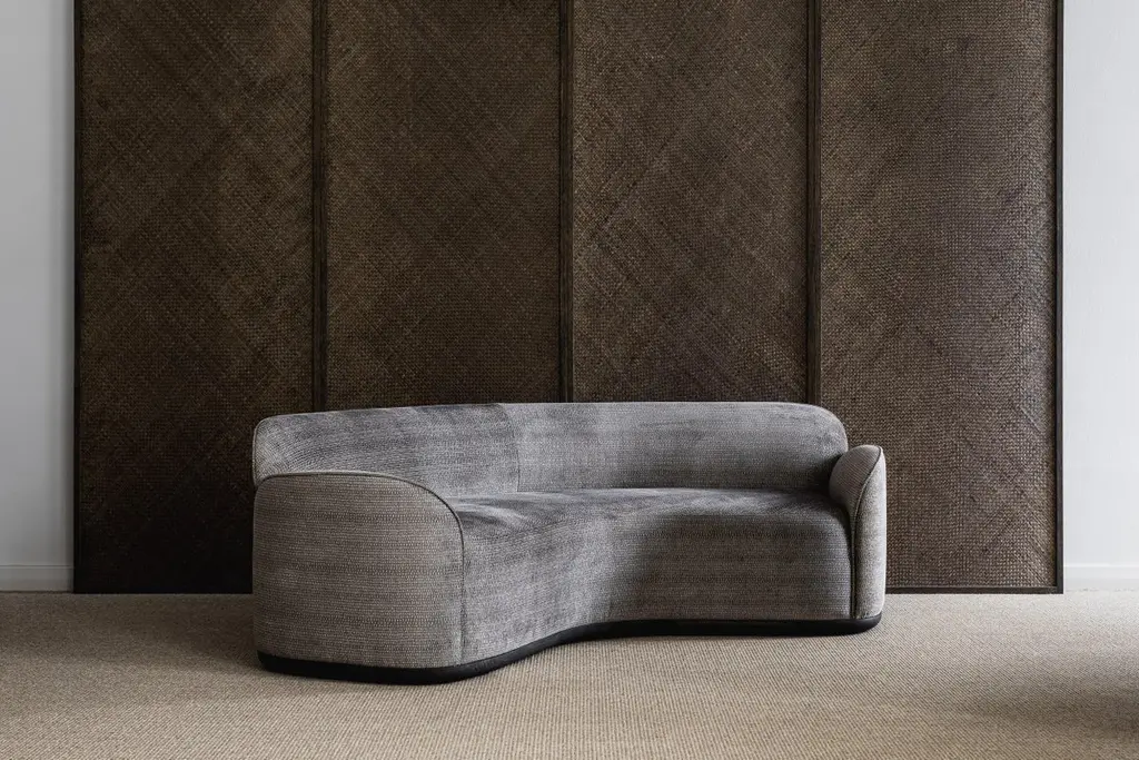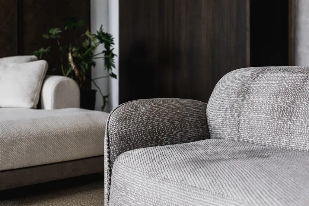 Unio Curved sofa by Poiat Designers: Timo Mikkonen & Antti Rouhunkoski Collection UNIO 2023Dimensions: H. 72 x W. 220 D. 110 cm SH. 40 (3 seaters)Model shown: Tiger Mountain Graphite - Dedar The Unio Collection, featuring an armchair and sofas, opens a new chapter for Poiat Studio & Furniture, with a focus on new furniture forms and textures. Offering a view of new and upcoming while at the same time acknowledging past decades’ influences and nostalgia, Unio Armchair combines comfort and contemporary design.The armchair has a fully upholstered plywood frame, commercial grade foam, and a solid ash plinth. The single-seater armchair can be acquired with a swivel mechanism that allows the product to rotate and revert to its original position.The selection of upholstery fabrics for Unio Collection is a carefully curated selection of fine fabrics from the industry’s most esteemed manufacturers, such as Dedar, Pierre Frey and Larsen.A winner of the Warmest Design prize at Monocle Design Awards 2022, the Unio Armchair combines influences from the past and present – focusing on soft forms and textures.