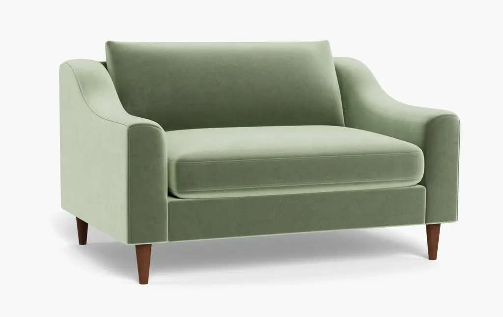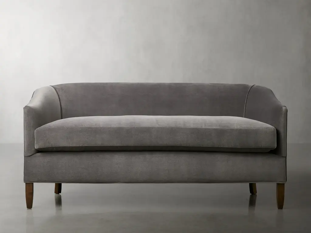 Contemporary Vegas Sofa Upholstered In Mark Alexander Velvet With Walnut Legs