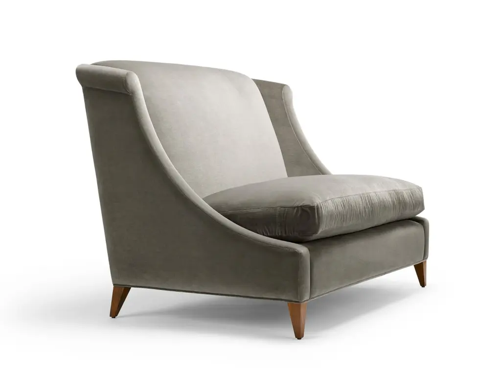 The Vegas Sofa, features a pronounced high back and sweeping curved arms. This special edition is upholstered in Mark Alexander Empire II velvet, colour Otter, with legs in natural oiled walnut. Empire is a luxurious velvet with a subtle horizontal slub, owing its distinctive character to a unique matt yarn with a refined lustre, developed exclusively for Mark Alexander. Presented in a rich palette that ranges from sophisticated neutrals and earthy shades through to warm spice and opulent jewel tones, this desirable velvet features a stain repellent finish, ensuring its practicality for upholstery. The sofa is constructed using a solid beech and birch frame with a coil sprung seat and webbed back. The seat features a loose 100% Feather & Down cushion.Each Stuart Scott piece is built by hand in our workshop in Wiltshire, England. Nothing is mass-produced. This ensures complete attention to detail, structural integrity and sheer build quality. We never compromise. When we finish each piece, it is signed and numbered: a unique handmade masterpiece.