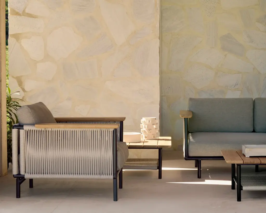 Inspired by the French word 'Corbeille,' meaning basket, the Corbey collection mirrors the charming beach hives found within the Wadden Islands, especially on the coastline of the picturesque island of Sylt. The Corbey sofa features plush, inviting cushions and intricately woven cord details, creating a perfect blend of style and relaxation for your outdoor haven.