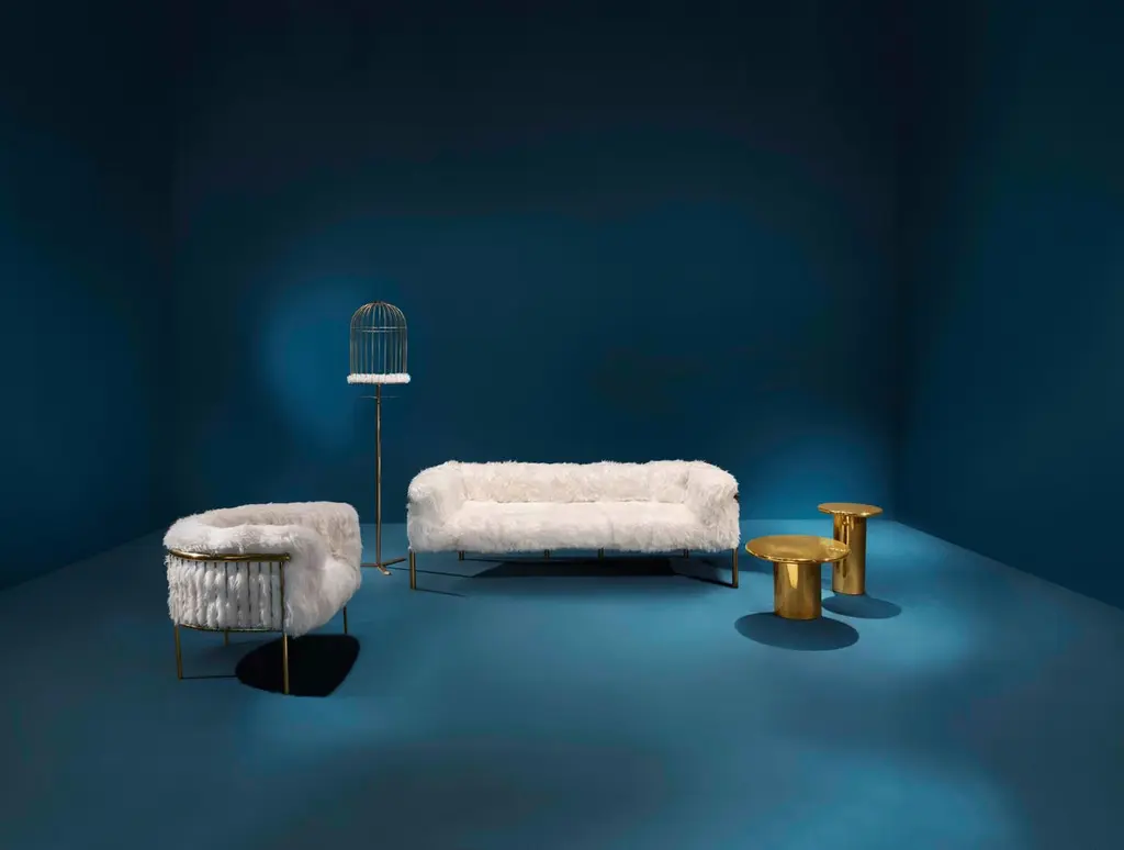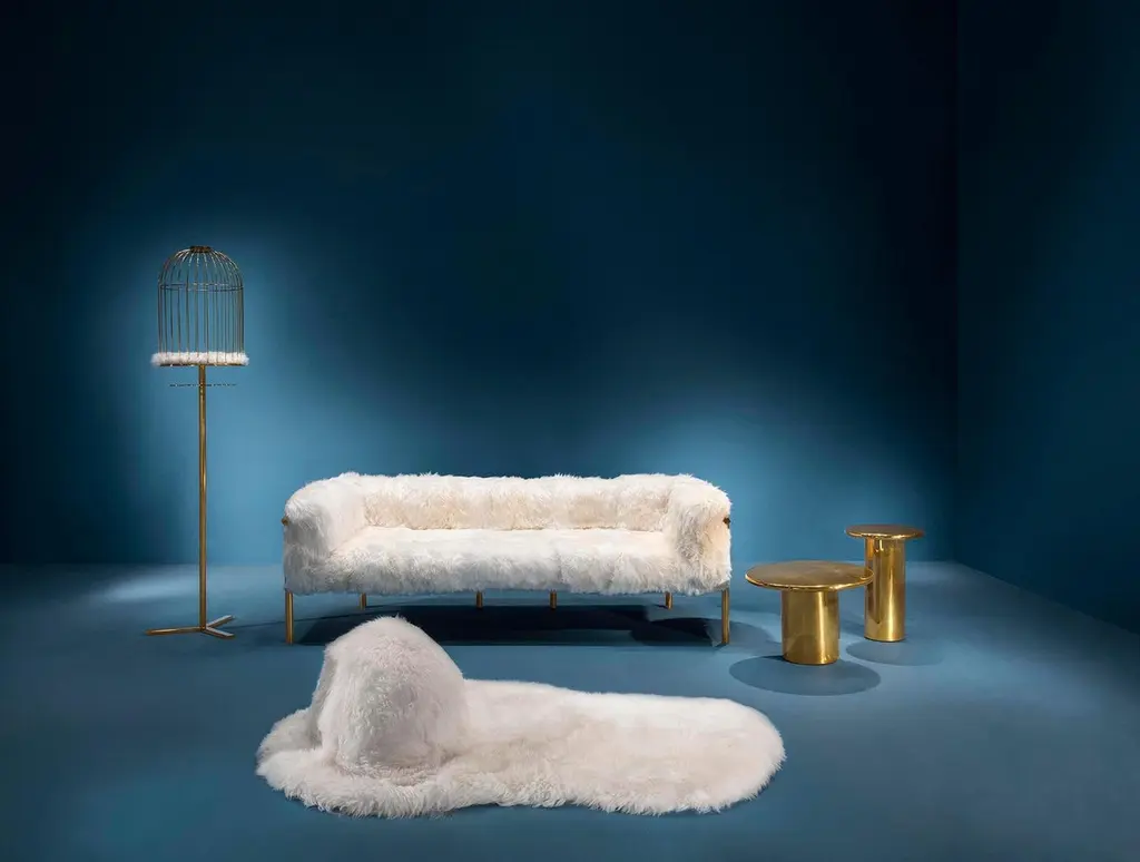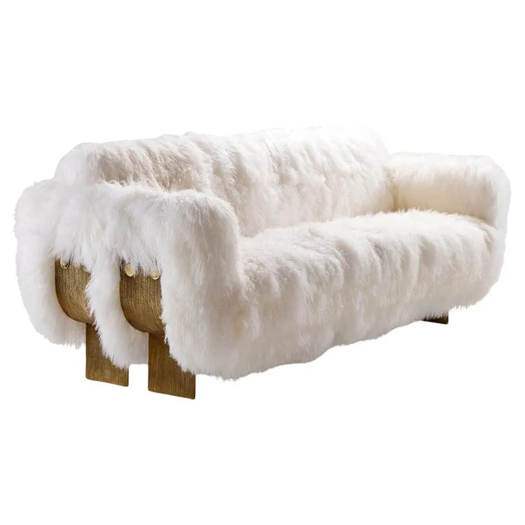 Coronum 3 Seat Gold Sheepskin Sofa By Artefatto Design Studio