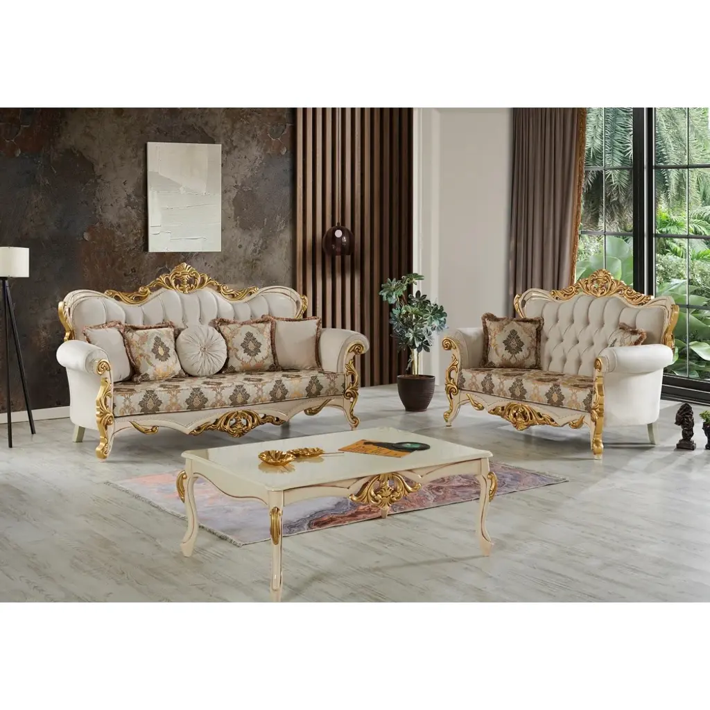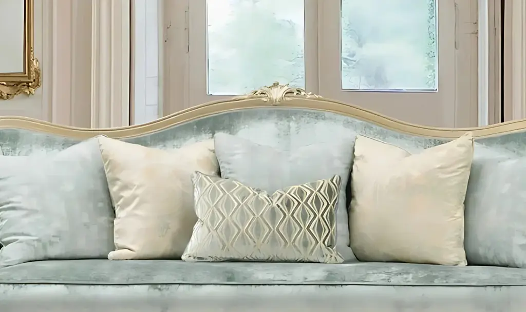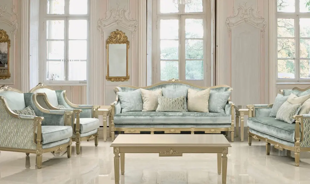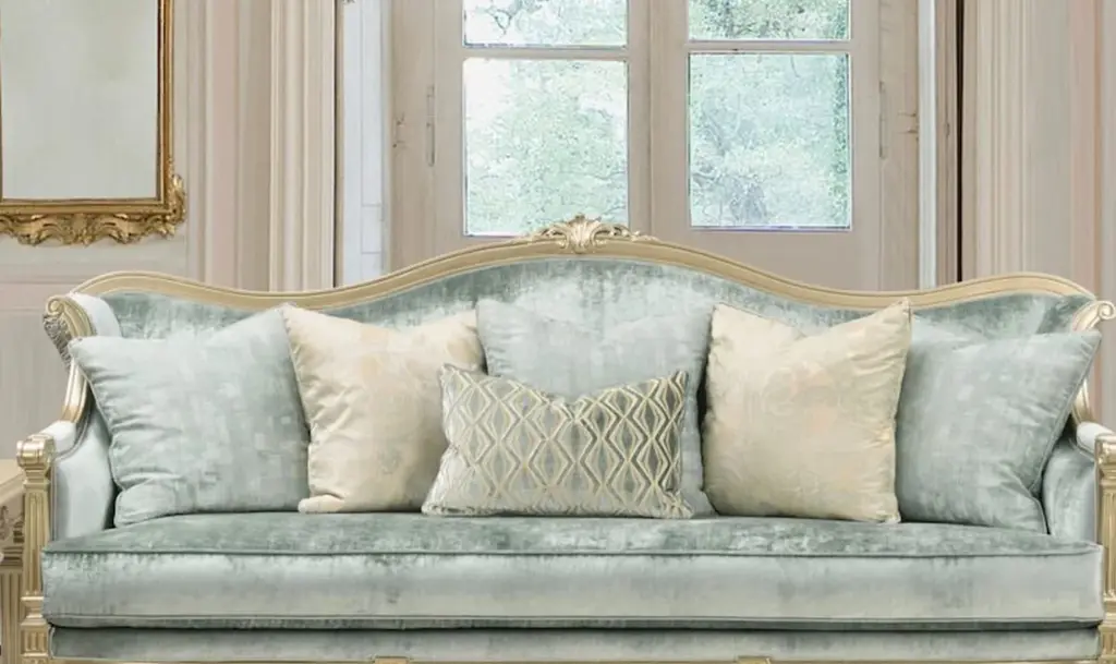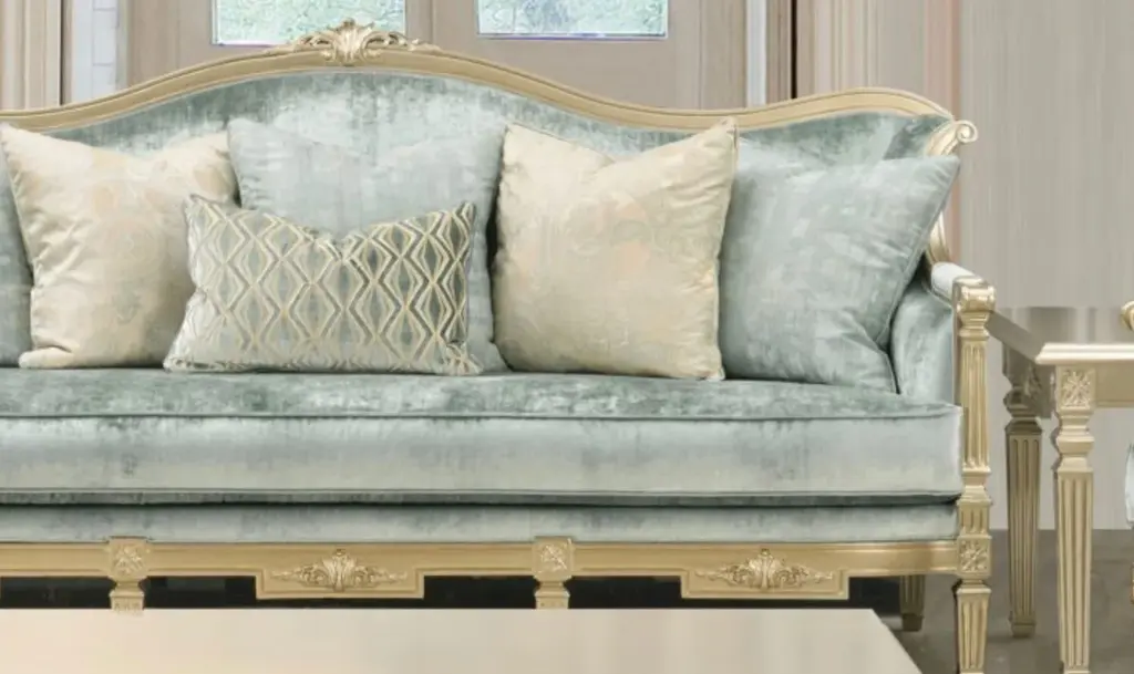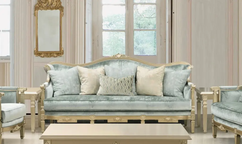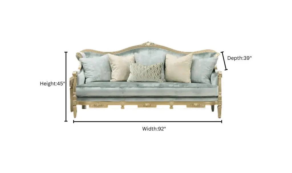 Elevate your living space with the London Fabric 3-seater sofa, a perfect blend of elegance and comfort. Its vibrant turquoise upholstery creates a refined yet eye-catching aesthetic, ideal for those seeking a distinctive centerpiece. The sofa is beautifully complemented by intricate gold detailing, which enhances its luxurious appeal, making it a statement addition to any room. Designed with meticulous craftsmanship, this sofa offers both style and functionality. The single cushion seat ensures a seamless and comfortable experience, while the accompanying six plush pillows add extra layers of comfort and visual interest. Whether placed in a modern or classic setting, the London Sofa effortlessly combines comfort with a sense of grandeur, making it an exceptional choice for any interior.