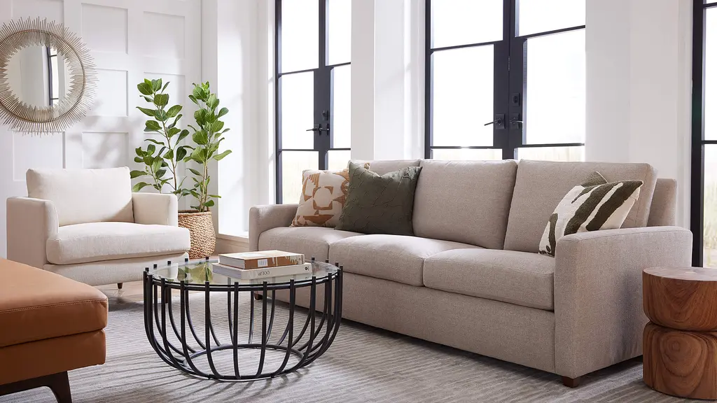 DESIGN Meet the Couch Potato Lite. Featuring all the relaxed, plush comfort of our original Couch Potato, with a thinner, more delicate arm and small block legs for a slightly more refined look. The ultimate cozy and luxurious experience, like binge watching your favorite show in cashmere sweats. Handcrafted in the USA. FEATURES Solid Foundation: Our frames are constructed from precision-cut, FSC-certified engineered wood for unmatched strength and stability, featuring reinforced, interlocking joinery for added durability. Customizable Cushion Options:Choose from standard or down alternative cushions. Standard cushions offer our most supportive sit and a sleek, tailored look that requires minimal fluffing. These cushions feature high-quality, high-resiliency CertiPUR-US® foam core seats wrapped in premium fiber with foam-filled back cushions. Down alternative cushions deliver our most relaxed yet supportive sit, with a more casual look that requires moderate fluffing. These cushions feature high-quality, high-resiliency CertiPUR-US® foam core seats wrapped in plush down-alternative fiber, with premium down-alternative-filled back cushions. CertiPur-US® foam is held to the highest standards of product safety and durability, so you can rest easy. Supportive Webbing Suspension: Designed to maximize comfort, our premium webbing system provides a resilient foundation. Customizable Upholstery: Choose from a vast selection of durable premium and performance fabrics and genuine Italian leather to personalize your Couch Potato Lite Sofa's look.