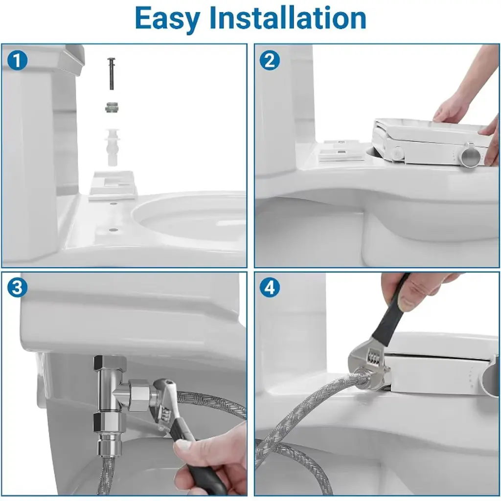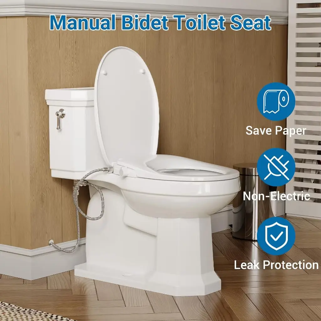Coucheta 17 Inch Bidet Toilet Seat For Round Toilet - Non-electric, Self-cleaning Nozzle, Feminine Hygiene, Easy Install, White
