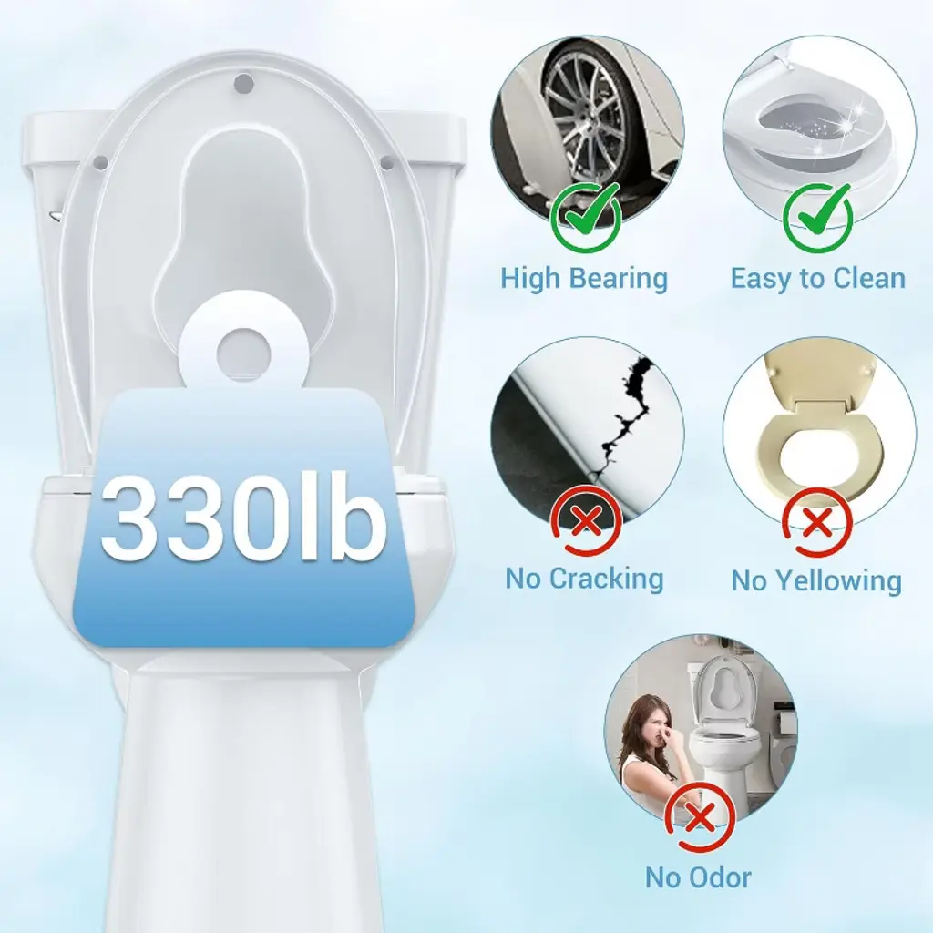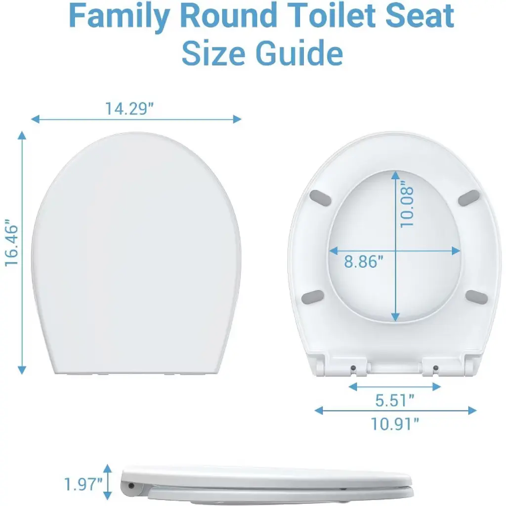 Coucheta Round Toilet Seat With Built-in Toddler Seat - For Adults & Kids, Quick Release, Soft Close, Non-slip, White, Fits Standard Round