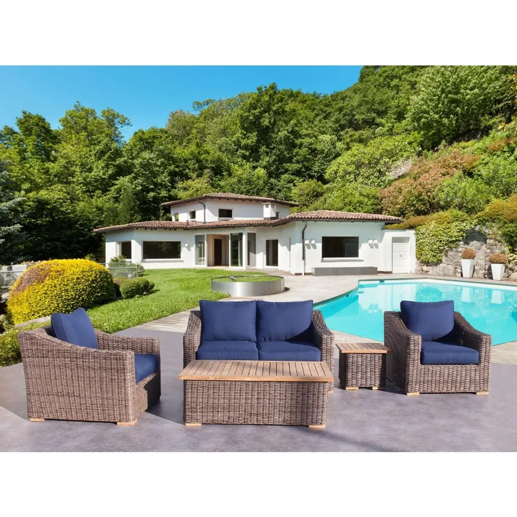 Artisan woven outdoor seating and meticulously designed is driving the popularity of this Tivoli collection from all areas. All pieces are fully assembled and welded over an all aluminum frame. Adding teak wood table tops finishes the feel and natural texture look overall. The cushions are sewn with olefin fabric and stuffed with densified foam and wrapped outdoor fiber for comfort. All cushions have zippers for easy cleaning. The two-tone wicker used is made of synthetic resin and made for the outdoors. One Year Limited Manufacturer Warranty.