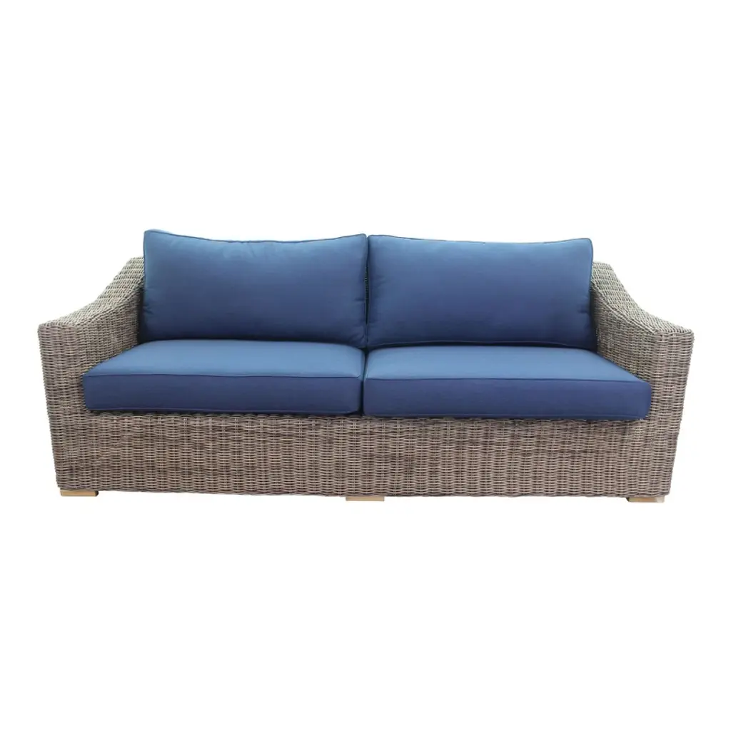 Courtyard Casual Tivoli Three Sofa In Teak Full Round Wicker Alum Frame 207/ Polyester 450gram
