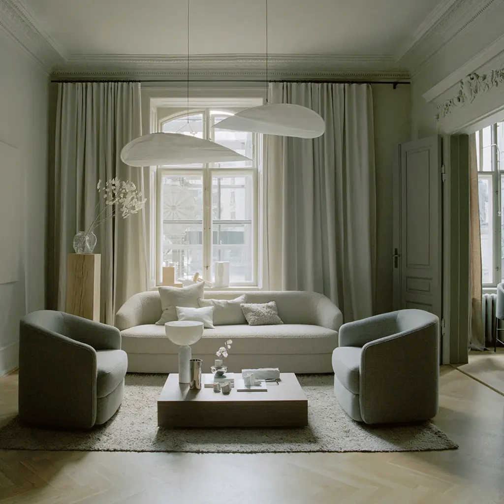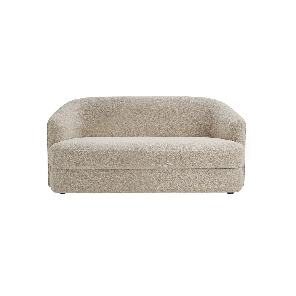 Drawing on his original Covent chair, Arde Studio designer Rene Hougaard’s companion sofa collection finds the curvaceously cocooning seat extends to the floor, its geometric base swapped for a fabric covering and graced with generous cushioning. As inviting as it is comfortable, both the 2 Seater and 3 Seater versions are available in either narrow or deep seat depths. Made entirely in Denmark, the sofa showcases both the expert craftsmanship and updated Scandinavian tradition that embodies New Works.