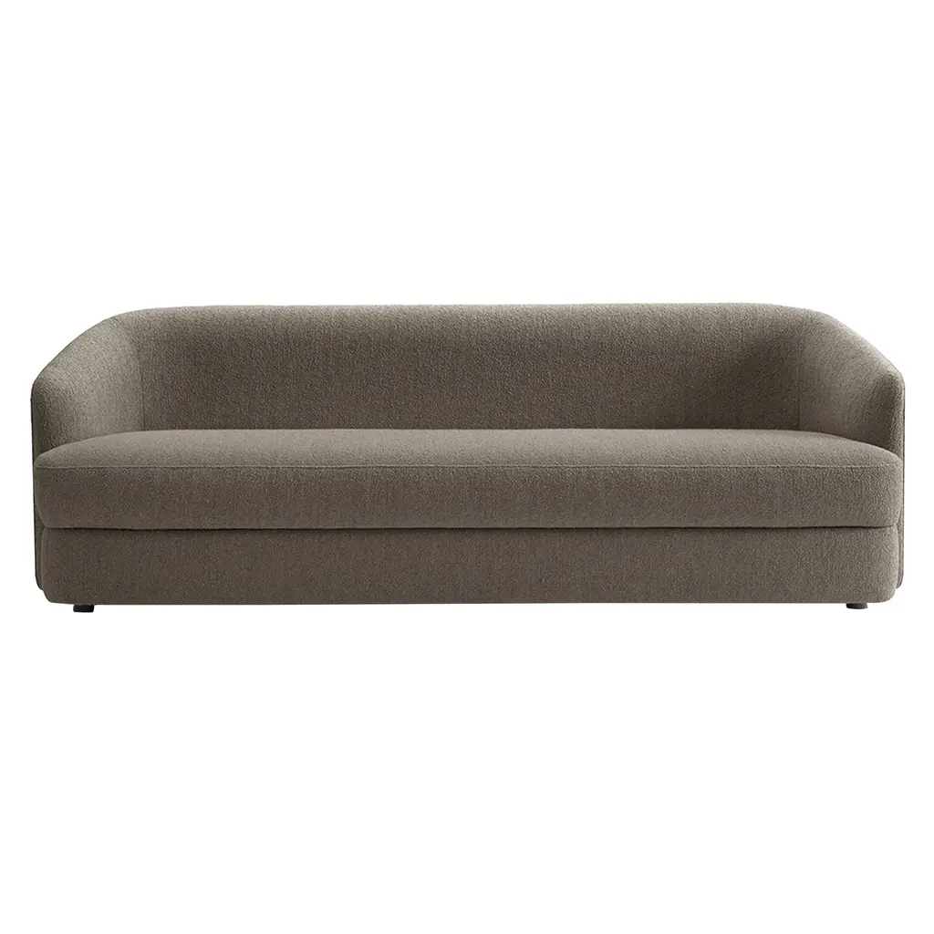 Drawing on his original Covent chair, Arde Studio designer Rene Hougaard’s companion sofa collection finds the curvaceously cocooning seat extends to the floor, its geometric base swapped for a fabric covering and graced with generous cushioning. As inviting as it is comfortable, both the 2 Seater and 3 Seater versions are available in either narrow or deep seat depths. Made entirely in Denmark, the sofa showcases both the expert craftsmanship and updated Scandinavian tradition that embodies New Works.