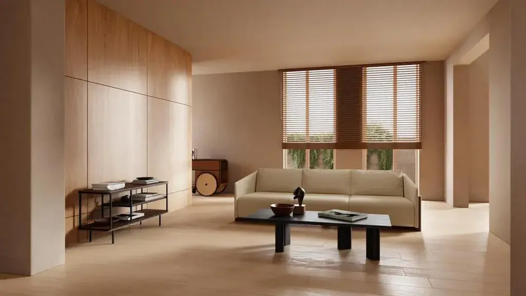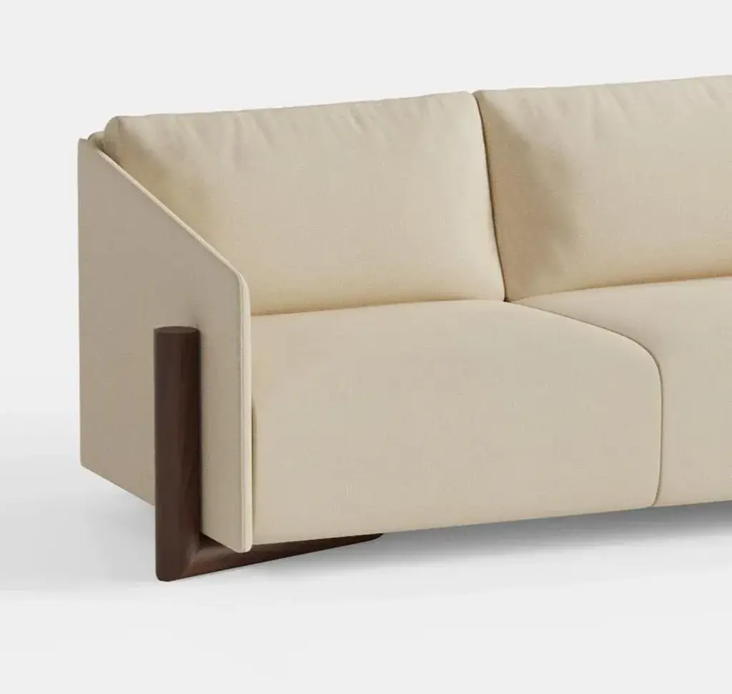 Cream timber 4 seater sofa by kann design dimensions: d 104.5 x w 260 x h 75 cm. Materials: solid wood, elastic belts, hr foam, fabric upholstery kvadrat vidar 1511 (94% wool, 6% nylon). Available in other fabrics. the strong presence of textile in the timber collection gives it the appearance of a comfortable cloud that seems to levitate above the ground. The wooden structure disappears under the furniture to appear only at the back and on each side of the armrests, playing on the resemblance to the roots of a tree. The character and dynamism of the furniture is reinforced by the choice of a two-color between the textile and the wood.