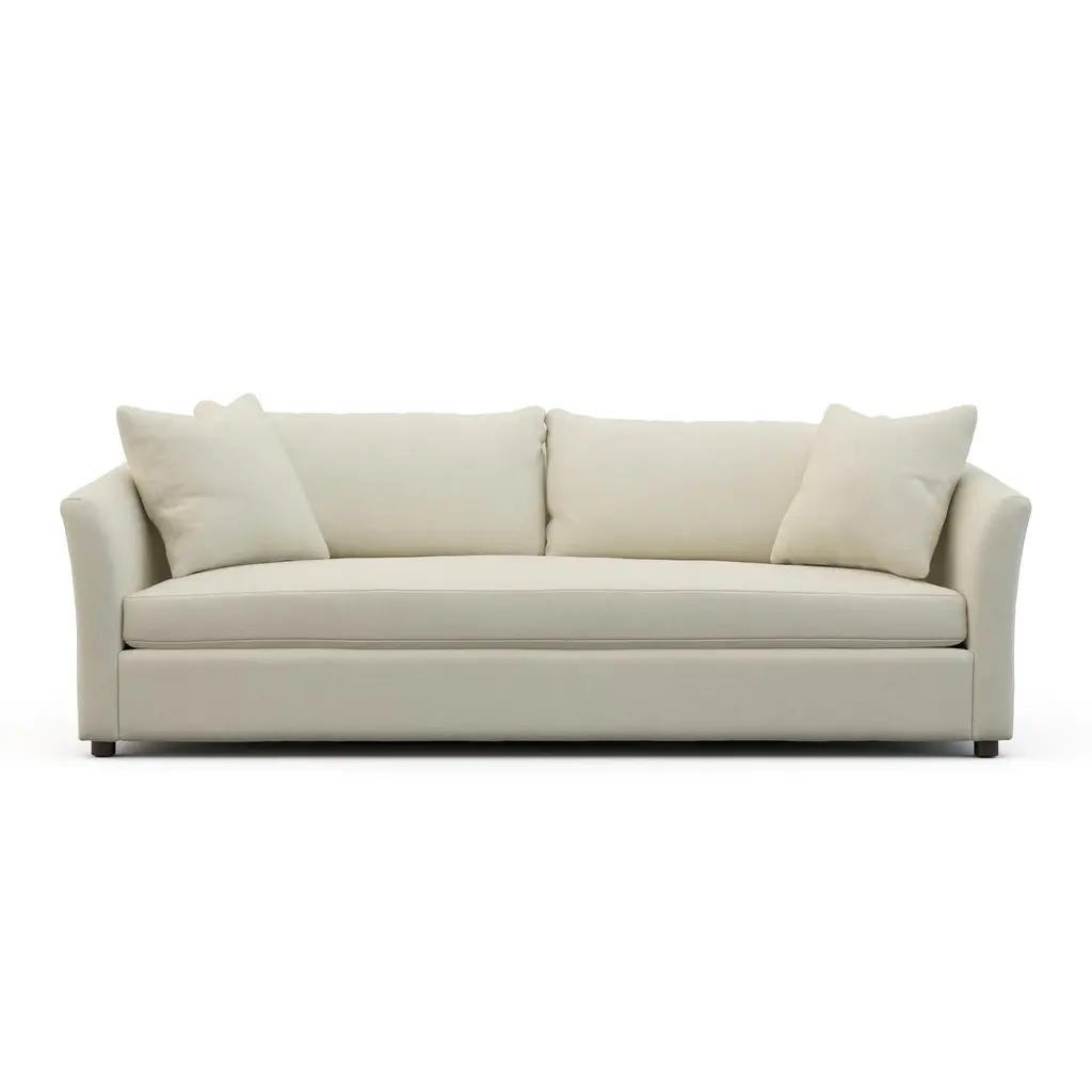 With gently curved arms and back, the Crescent Sofa provides plush comfort and is versatile for any design. Available in a wide assortment of fabrics and finishes, customize this sofa to perfectly suit your space. Ships In 8-10 Weeks Two 21" square throw pillows Two loose back pillows One loose seat cushion As Shown Fabric: Rayburn Oatmeal As Shown Finish: Antique Walnut If you choose to purchase COM, once you have placed your order a customer service rep will contact you regarding where to send your fabric. Please note that current lead time is 17-19 weeks once your fabric arrives at the factory, and if unused fabric is under 1.5 yards, it cannot be sent back to you.This product can be special ordered in additional fabrics, leathers, finishes, and cushion fillings. Click here to email us for for additional information about special ordering.This image is for illustrative purposes only. The colors shown are accurate within the constraints of lighting, photography, and the color accuracy of your screen.